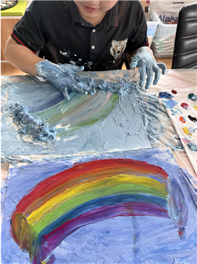 - 비정형매체인 쉐이빙폼, 색을 표현할 수 있는 물감을 이용해 ‘미해결과제’에 대해 청소년이 이해할 수 있도록 충분한 설명 후 해결되었을 때의 감정을 표현해 보았다..