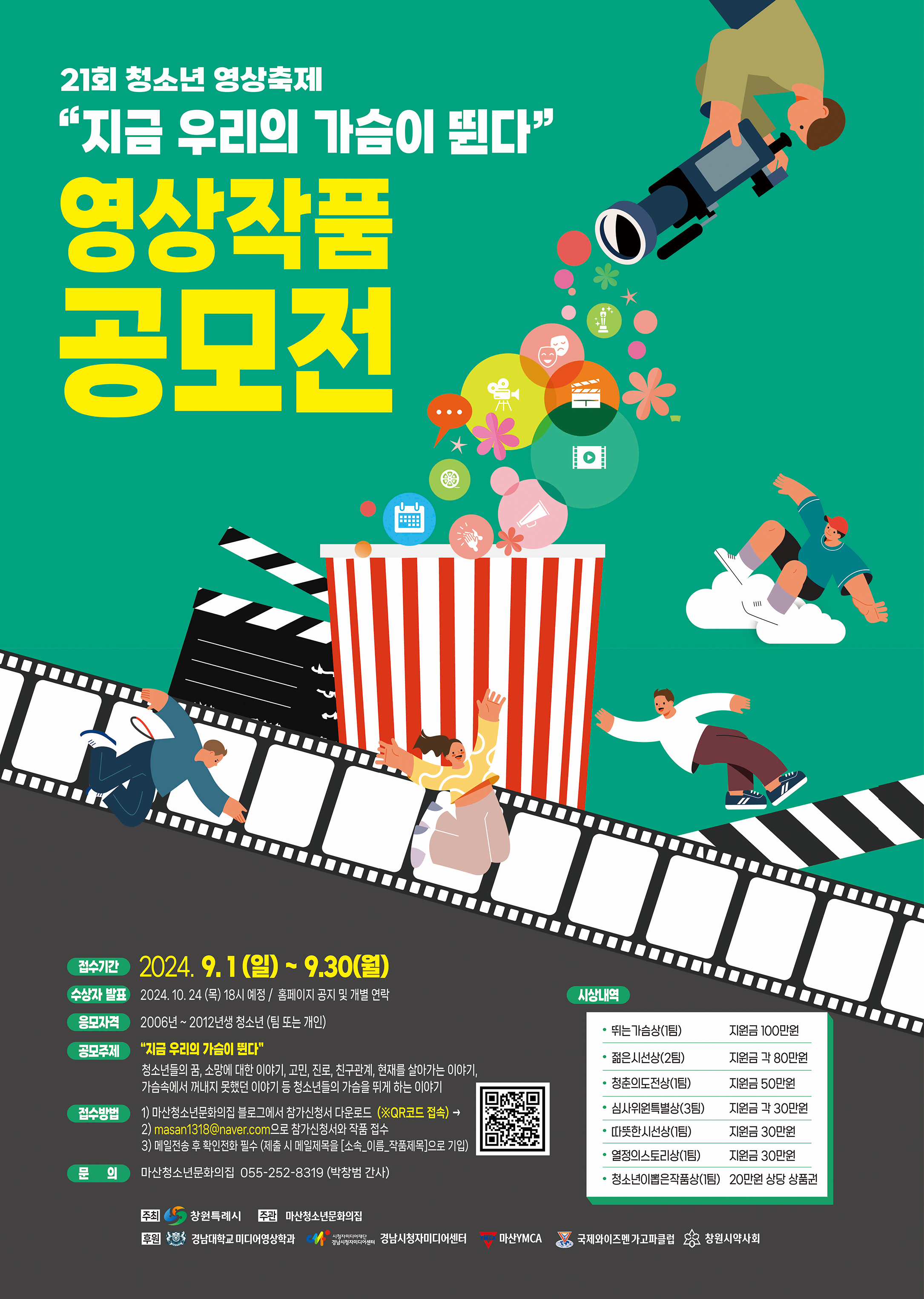 2024년 오늘을 살아가는 우리 청소년들의 가슴을 뛰게 하는 청소년들의 꿈과 그 꿈을 이루기 위한 청소년 영상을 담은 작품 공모전을 실시합니다.