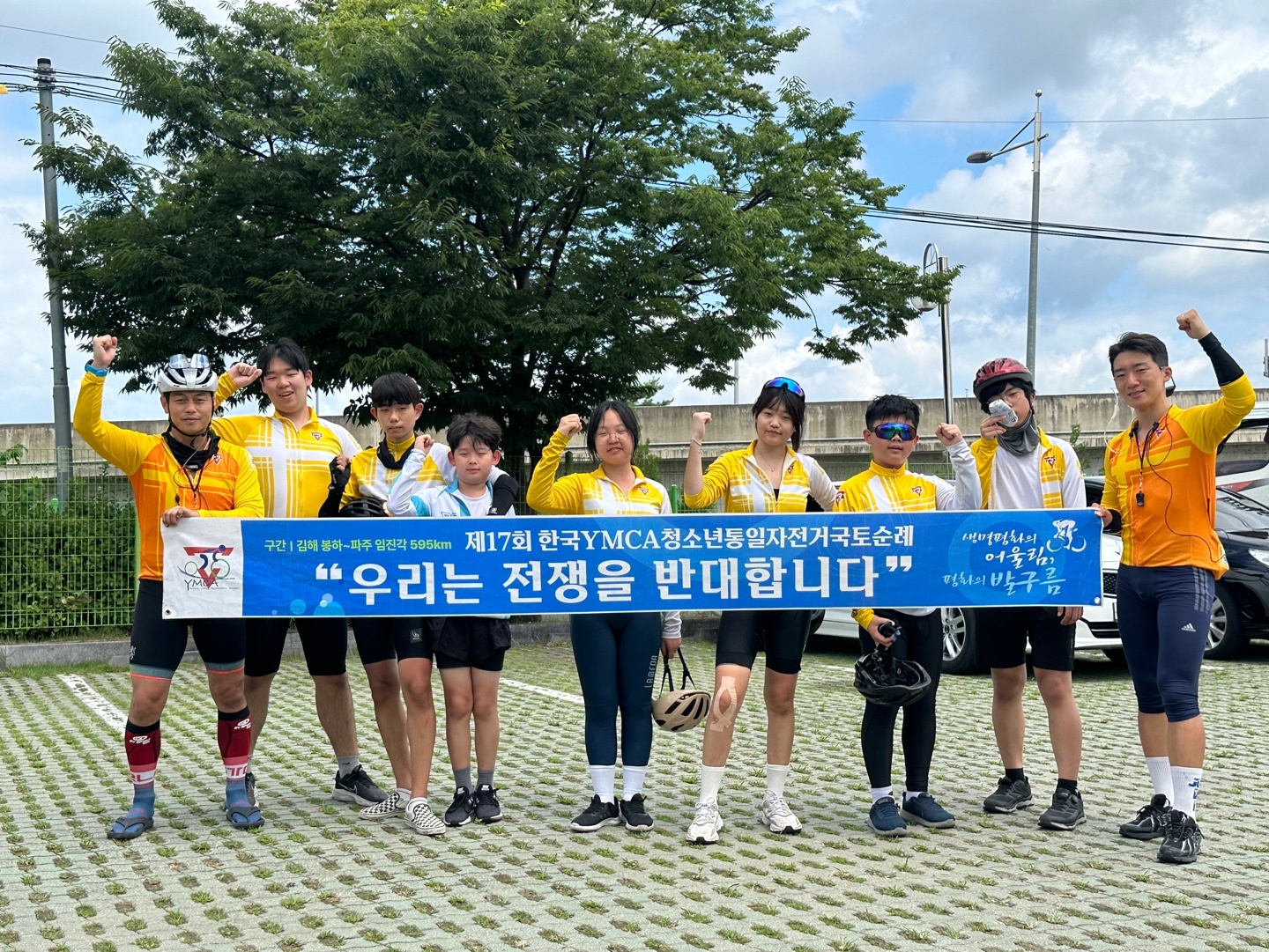 전국YMCA가 함께하는 프로그램으로 여름이 되면 청소년들과 함께 자전거국토순례를 합니다. 평화라는 슬로건을 내걸고 벌써 17년째 이어오고 있지요. 초등학생 5학년에서 고등학생 친구들까지의 아이들이 100여명 참가하였습니다.