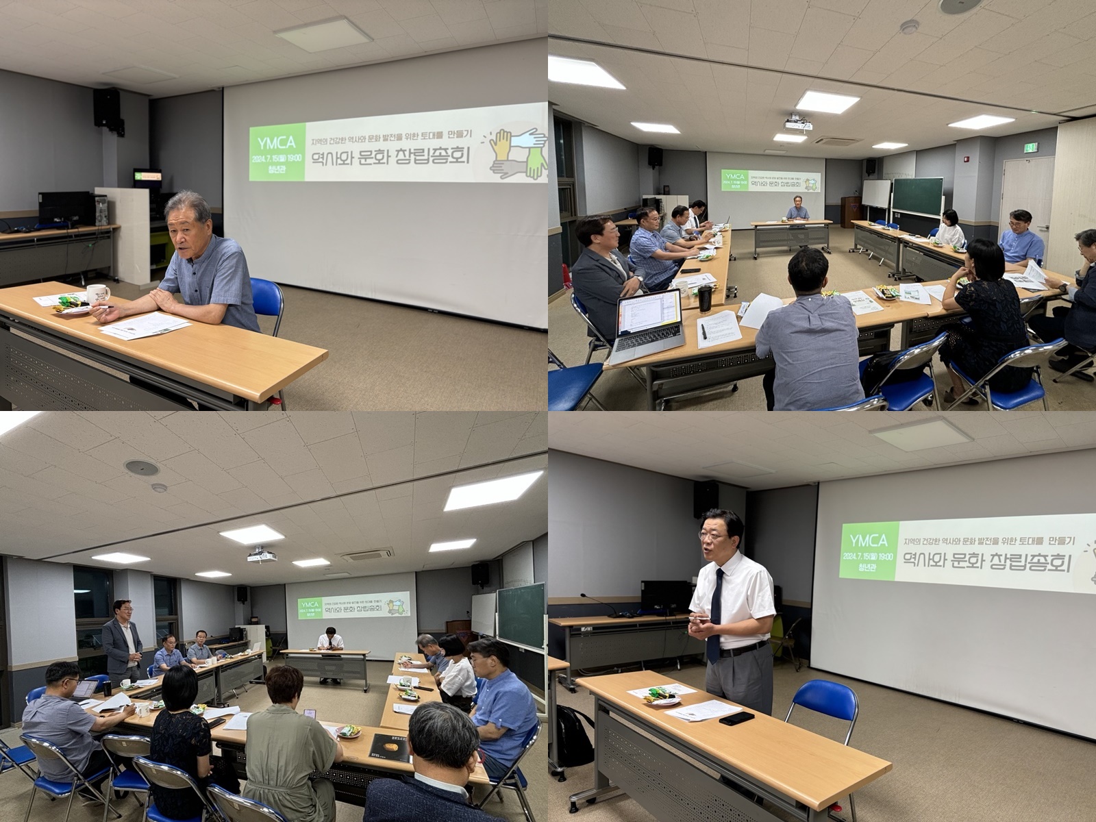 세 차례의 준비 모임을 가진 후 16명 회원으로 참여하는 ‘역사와 문화’가 7월 15일 정식으로 창립하게 되었습니다. 창립총회는 회칙 제정, 임원 선출, 사업계획 등을 확정하였으며, 초대 회장은 김태석, 총무 류위훈, 회계 하은영 회원이 선출되었습니다.