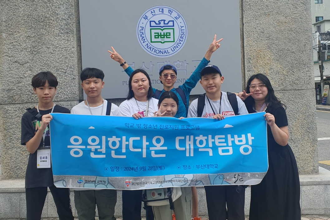 2024년 학교 밖 청소년들의 학습의욕을 고취시키고 대학 및 진로, 직업에 대한 정보를 제공하고자 위카페다온에서 대학탐방을 준비했습니다. 응원한다온(위카페다온 검정고시 지원사업)에 참여한 학교 밖 청소년을 대상으로 7월 30일(화)~8월 13일(화) 총 15일간 대학탐방을 홍보하고 인원모집을 진행하였습니다. 탐방대학교는 하반기 응원한다온 후기 이벤트 진행 시 설문조사를 통하여 ‘부산대학교’로 결정되었고, 산청, 양산, 창원 지역으로 구성된 학교 밖 청소년 6명과 함께 대학탐방을 다녀왔습니다.