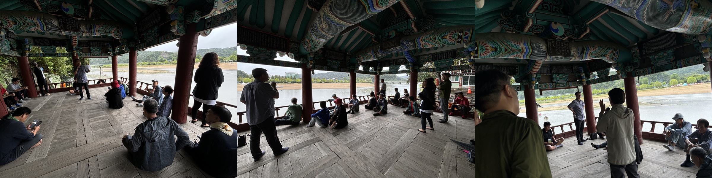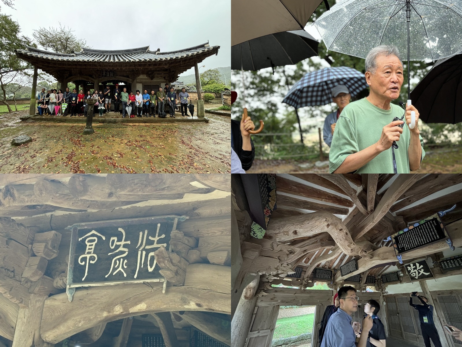 그럼에도 호연정은 재미있는 곳이었습니다. 호연정 편액 중 미수 허목이 쓴 편액은 그림을 영상하는 서체였습니다. 그리고 자재로 쓴 나무의 형태가 눈에 들어왔습니다. 대들보를 반듯한 모양이 아니라 용의 꿈틀대는 모습같은 구불구불한 나무를 썼습니다. 자연스럽고 재치가 돋보였습니다. 호연정에서 건축전문가인 허정도 위원의 기둥에 대한 설명이 더해져 즐거운 현장 공부를 마칠 수 있었습니다.