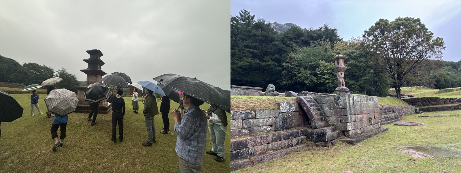 영암사지는 자세한 연혁이 전해지지 않았으나, 주민들에 의해 ‘영암사’라고 구전되어 왔습니다. 금당지 기단의 사자상, 쌍자석등의 디테일 그리고 일본의 만행, 영암사지 삼층 석탑 등 우중에서 진행된 설명을 들으며 ‘와~’라는 탄식이 절로 나왔습니다. 만약 비가 오지 않았다면 보물 찾기 하듯 천천히 찾아보고 느낄 수 있는 곳이었습니다. 물론 김주용 위원과 같은 학예사와 함께여야 가능한 일이지만...결국 비가 계속 내리고 어두워지기 시작해 답사는 마무리해야 했습니다.