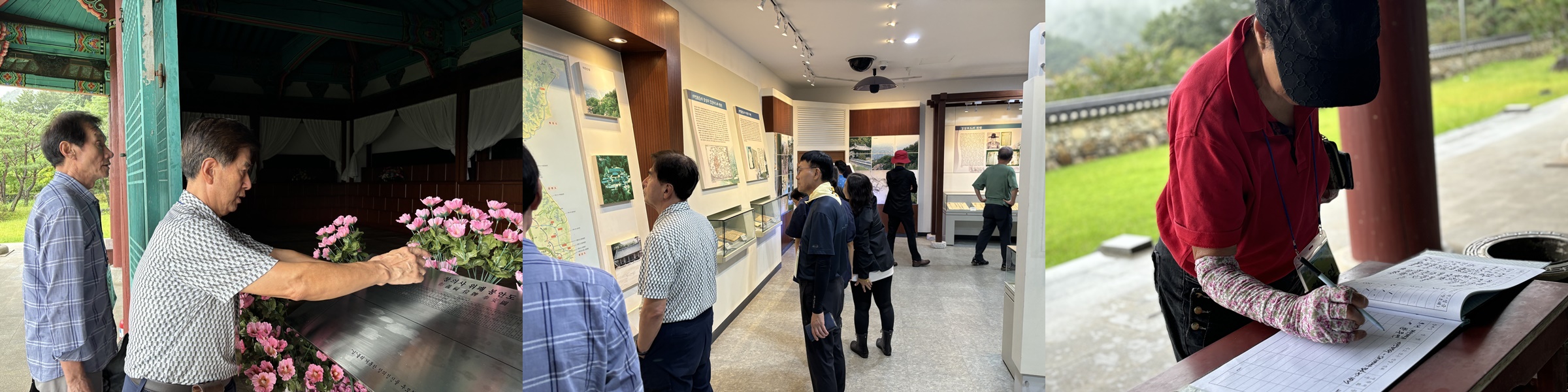 아쉬움을 살짝 남기고 이동한 곳은 임란창의기념관이었습니다. 이곳은 처음 답사 계획에는 없었는데, 시민대학 합천 강의 중 ‘일본과의 관계 속에서 본 합천’ 주제를 맡은 김강식 교수님이 합천에 가면 꼭 가보라는 곳이어서 급하게 답사 코스로 추가했습니다. 아주 소박했지만 주변 산새와 구경도 함께하면서 의병들의 정신을 생각할 수 있는 곳이었습니다.
