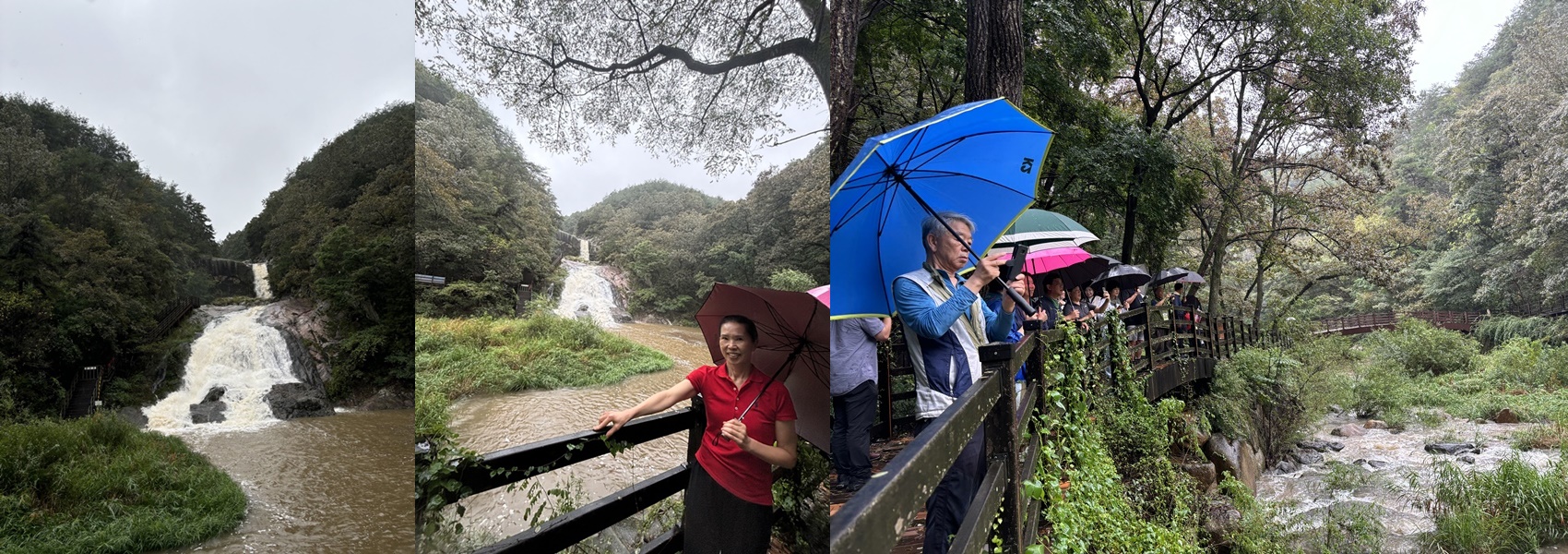 다행히 황계폭포로 향할 때까지는 합천에는 비가 많지 않았습니다. 하지만 그동안 내린 비로 폭포는 장관이었습니다. 모두들 말을 잃고 감상했고 일제히 핸드폰으로 그 현장을 담으려고 했습니다. 비 때문에 걱정이 많았는데 비 덕분에 잊지 못할 광경을 마주하였습니다. 쏟아지는 거대한 물줄기로 마음까지 깨끗이 씻긴 느낌이었습니다.