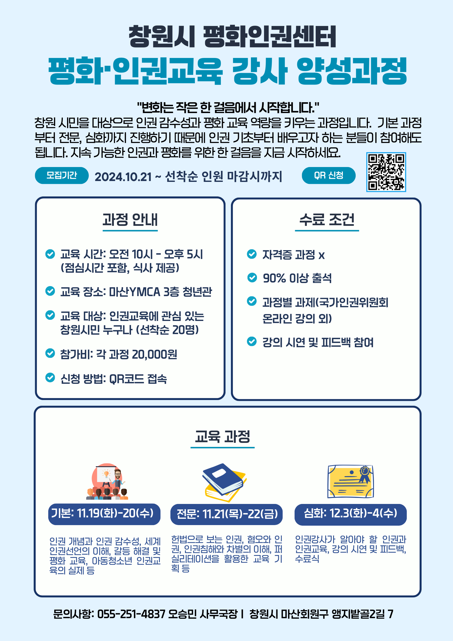 인권 감수성과 평화 교육의 역량을 키우는 기초-전문-심화까지 과정입니다.