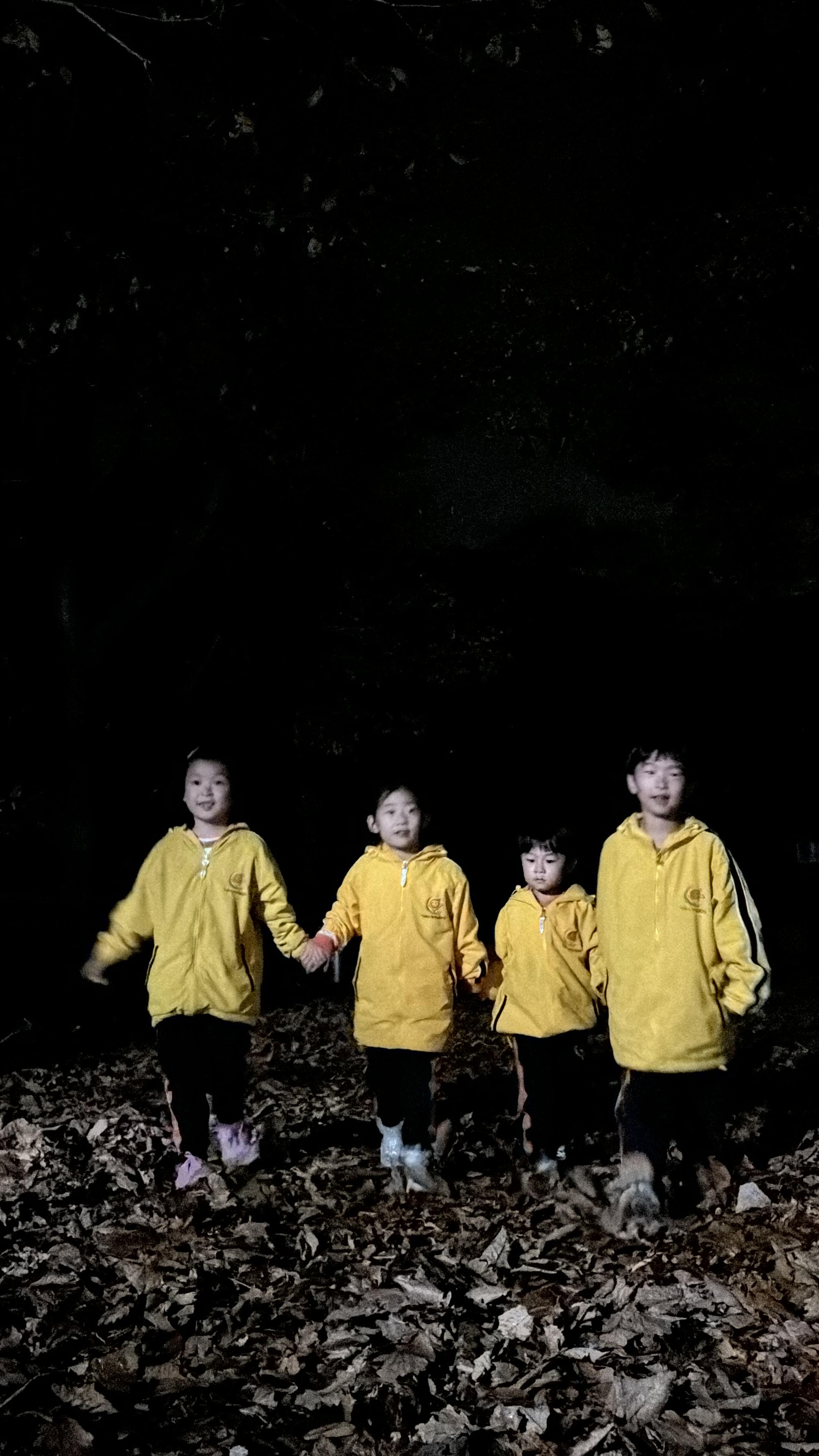 저녁에는 일명 '용감한 어린이 밤길 걷기'활동이 있었습니다. 5세~7세 아이들 한명씩 한팀이 되어 짧은 밤길을 서로를 의지하며 걸으며 도착지까지 걷는 활동인데요.(물론 중간중간 선생님들이 배치되어 아이들이 겁먹지 않도록 합니다.) 어찌 보면 인생 몇년차 되지 않은 아이들인데 '형아만 믿고 따라와"하며 동생들의 손을 잡고 걸어오는 아이들을 보고 있으면 기특함에 감동이 몰려오곤 합니다.