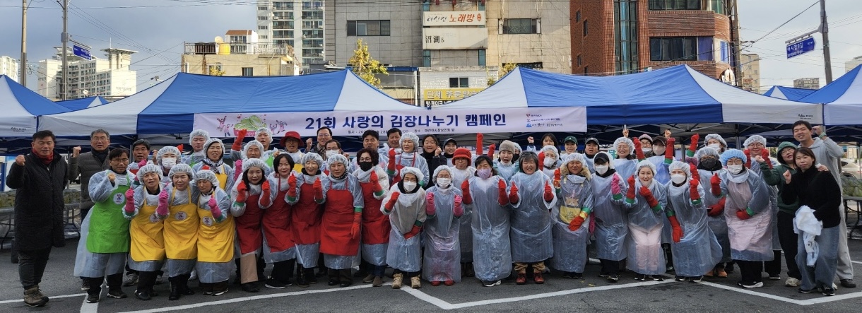 11월 28일(목) 오전 10시 마산어시장상인회 앞마당에서는 21번째 맞이하는 사랑의 김장나누기 캠페인이 진행되었습니다. 김장 때마다 찾아오는 추위는 예년보다는 따듯했지만 올해도 어김없었습니다.