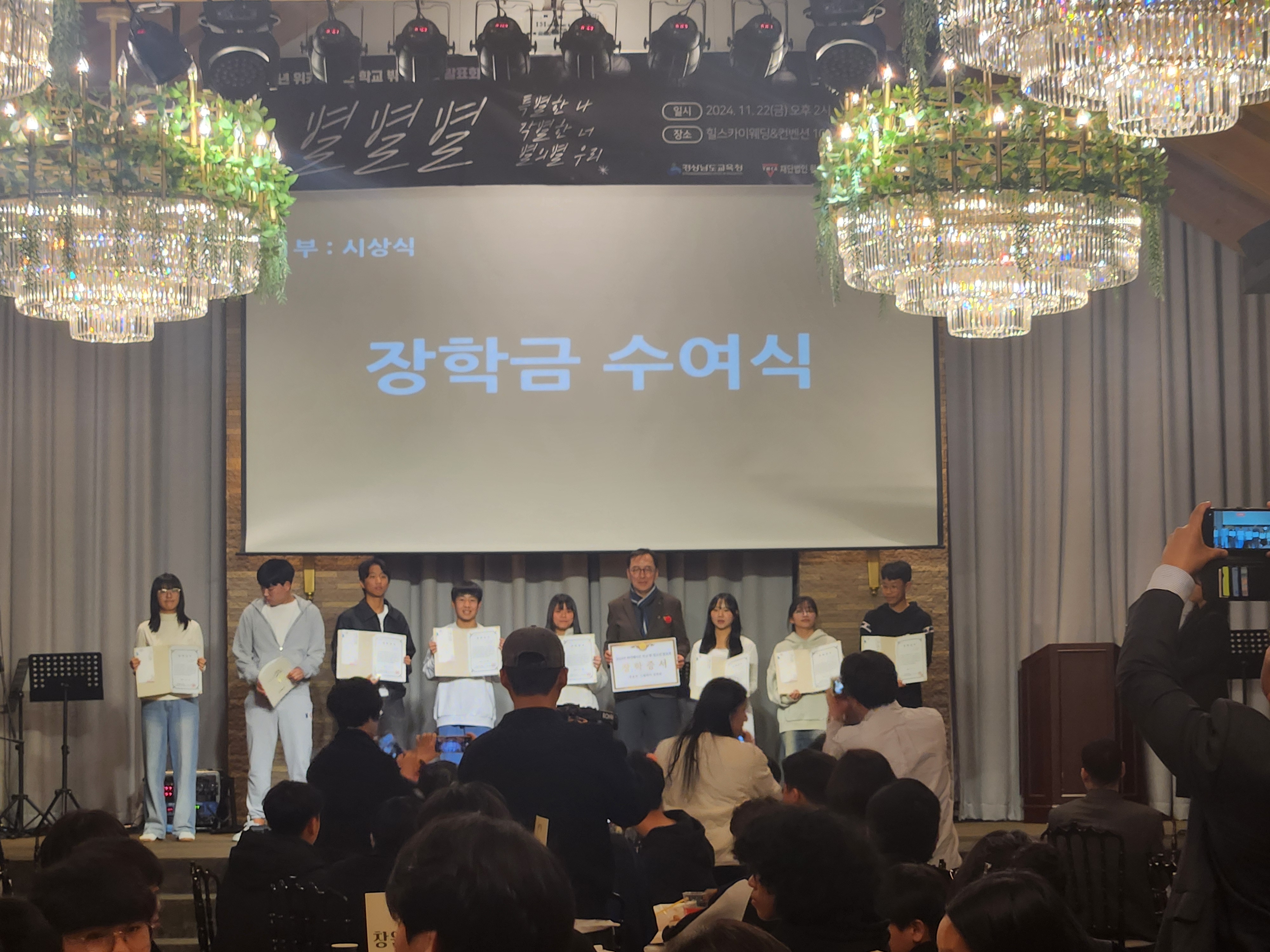 다음으로 위카페다온 지원협의회 드림하이 장학회를 통해 학업과 꿈을 위해 열심히 노력한 학교 밖 청소년에게 장학금 수여식을 진행하였습니다. 위카페다온 내부 심사를 거쳐 각 기관별로 한 명씩 선발되었으며, 총 8명에게 장학금을 수여하였습니다. 이어서 2024년 위카페다온과 함께 성장할 수 있도록 지지와 응원을 보내주시고, 위카페다온을 널리 알릴 수 있도록 열심히 활동해주신 고마운분들께 감사를 담아 공로상을 수여하였습니다. 장학금을 수여할 수 있도록 도움주신 위카페다온 지원협의회 드림하이 장학회에 깊은 감사의 인사를 전하며, 내년에는 더 많은 학교 밖 청소년들에게 장학금을 전해 줄 수 있기를 기대해 봅니다.