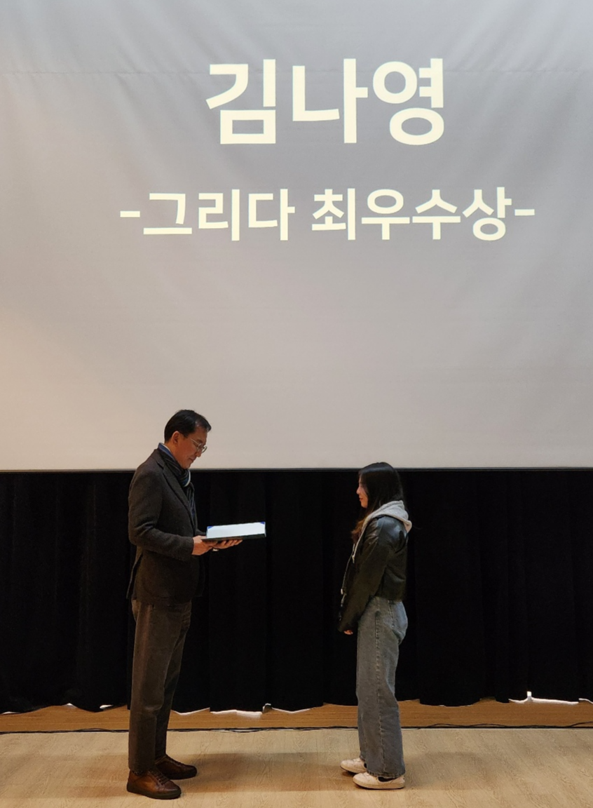 최우수상에는 김나영 선생님께서 수상하셨습니다. 김나영 선생님은 그리다 임원진 기획총무로 활동하면서 북카페 봉사에 끊임없이 기여하셨습니다.