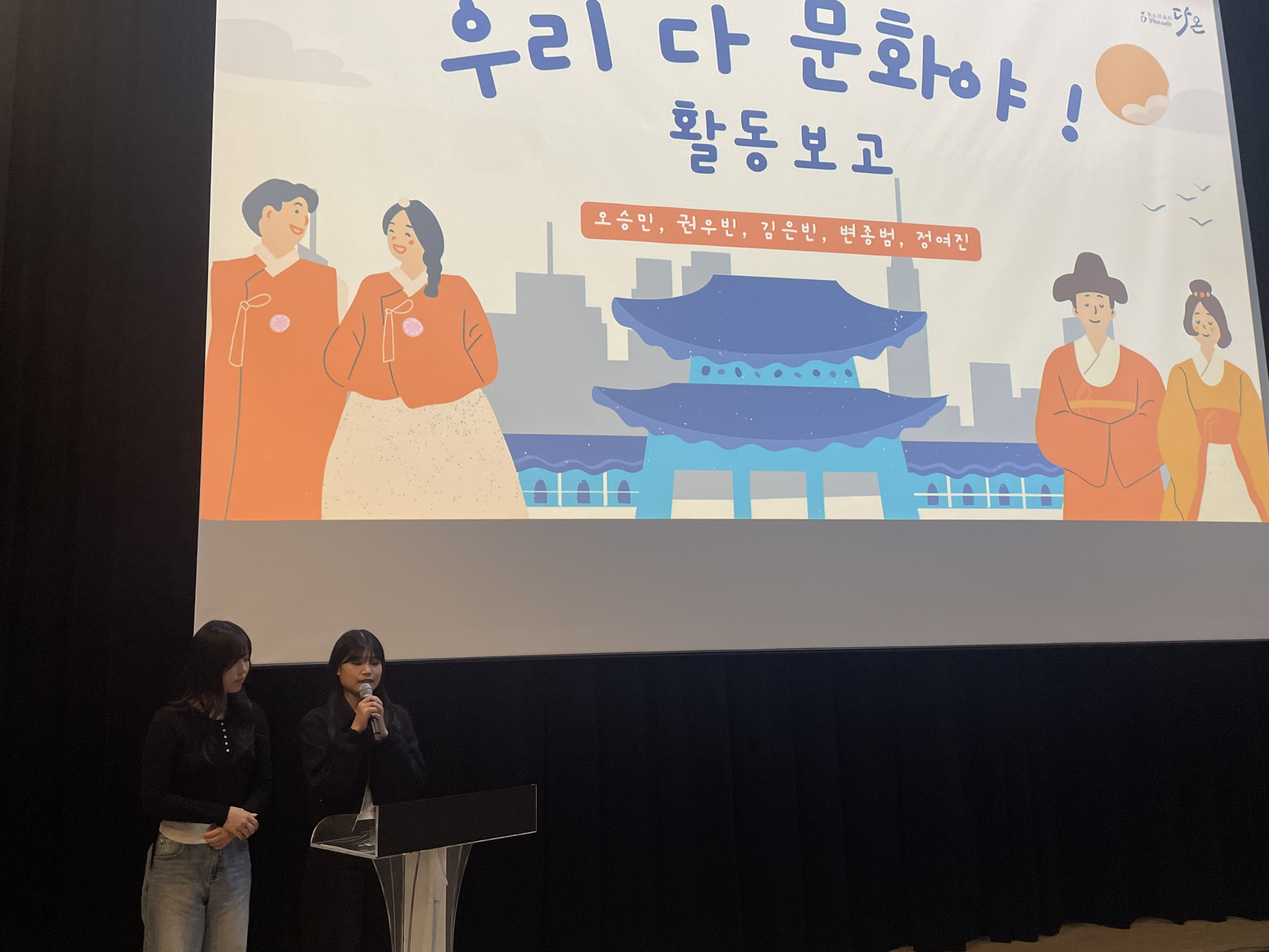 앞서 담당자가 소개한 활동을 세부적으로 알아볼 수 있는 그리다 활동보고, 멘토링 사례 발표 시간이 있었습니다. 그리다 '우리 다 문화야' 팀과 '사랑옵다온아' 팀이 우수 팀으로 선정되어 발표를 진행했습니다. 우리 다 문화야 팀은 청소년들에게 문화의 다양성을 알려주고, 각 문화를 직접 접해볼 수 있는 활동을 진행하여 청소년들에게 색다른 경험을 제공했습니다. 사랑옵다온아 팀은 위카페다온의 마스코트를 청소년들이 직접 만들 수 있는 기회를 제공하고, 투표를 통해 선정된 마스코트들을 굿즈로 제작하여 청소년들에게 특별한 경험을 제공했습니다.