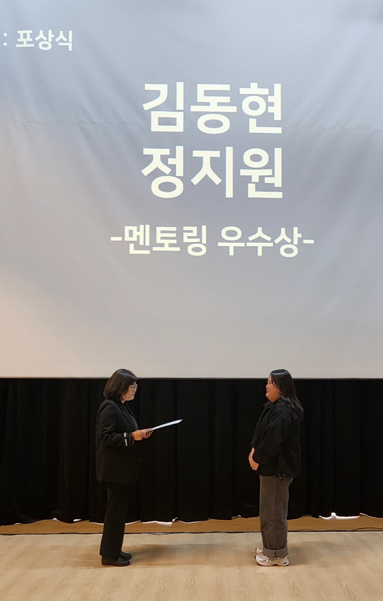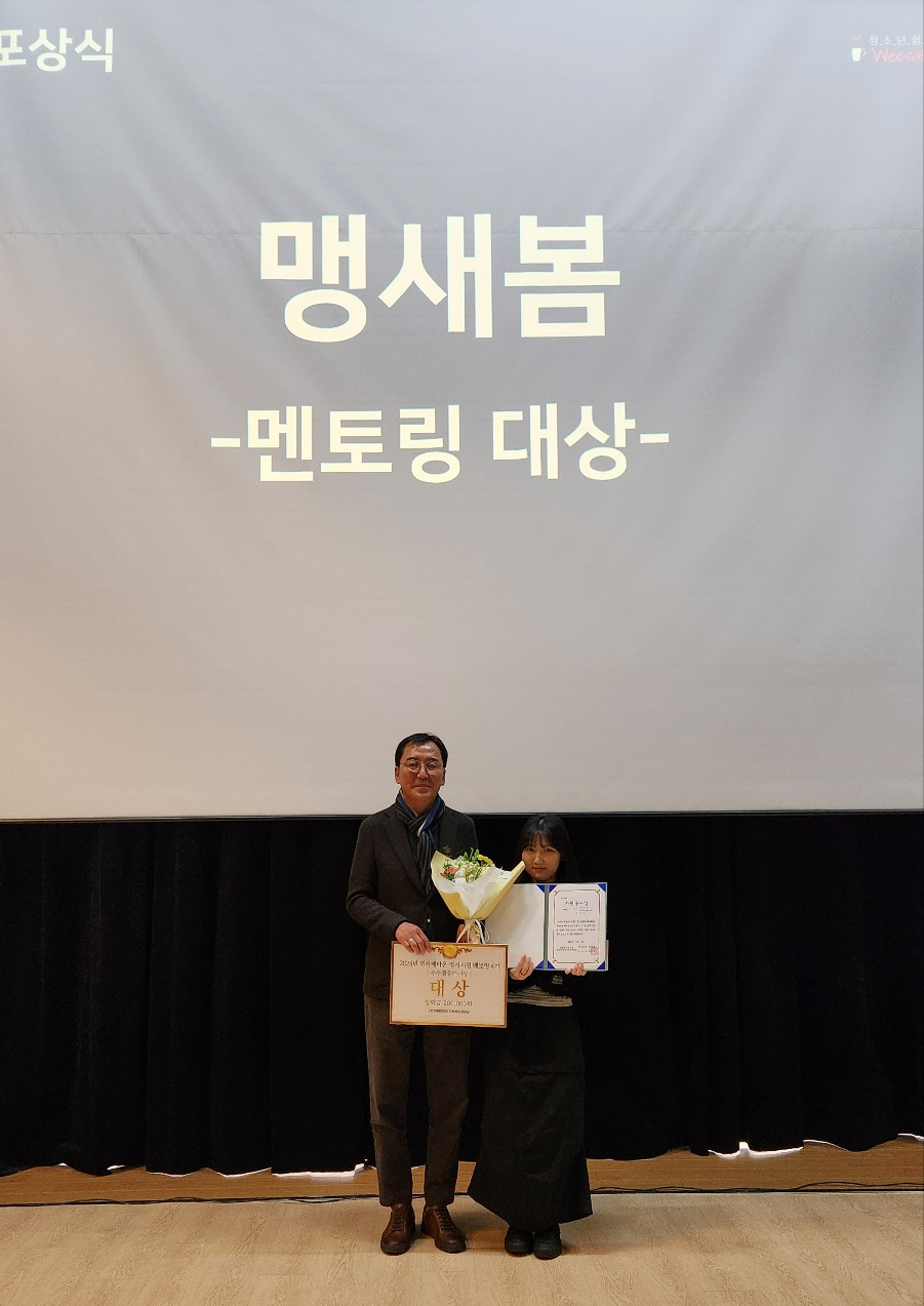 마지막 대상은 맹새봄 선생님께서 수상하셨습니다. 맹새봄 멘토는 다문화 멘티 청소년의 멘토로써 멘티 청소년의 정서적 결핍을 채워주기 위해 정서 관련 활동을 진행함으로써 정서적으로 불안정했던 멘티 청소년에게 정서적지지 제공과 자신의 감정을 탐색하고 건강하게 표현할 수 있도록 도모해주었습니다.