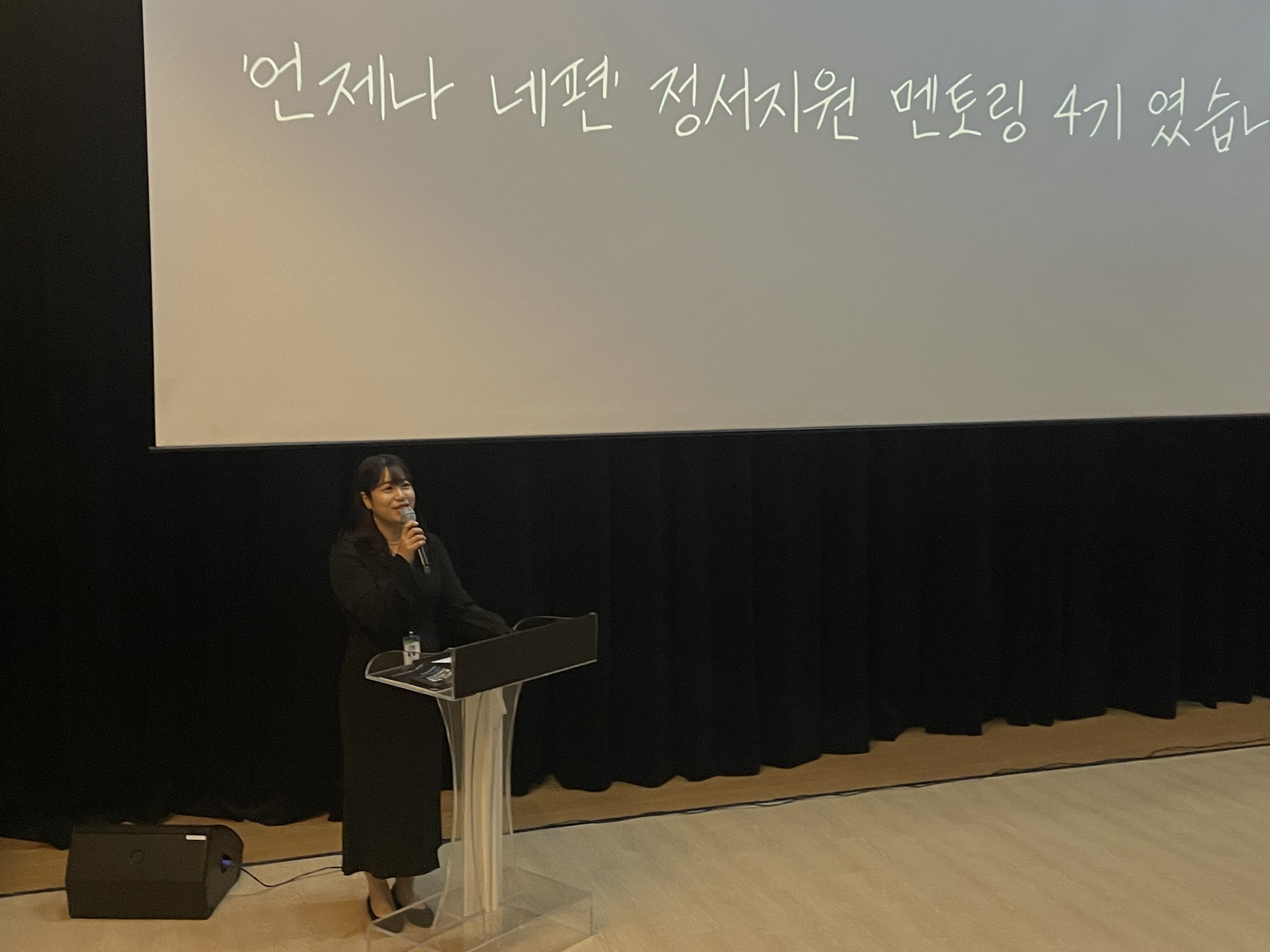 다음은 언제나 네 편 정서지원 멘토링 우수활동가 시상이 있었습니다. 특별히 이번 멘토 선생님들이 모두가 뛰어나게 활동을 잘 진행해주셔서 우수 활동가를 선정하기가 어려웠다고 합니다.