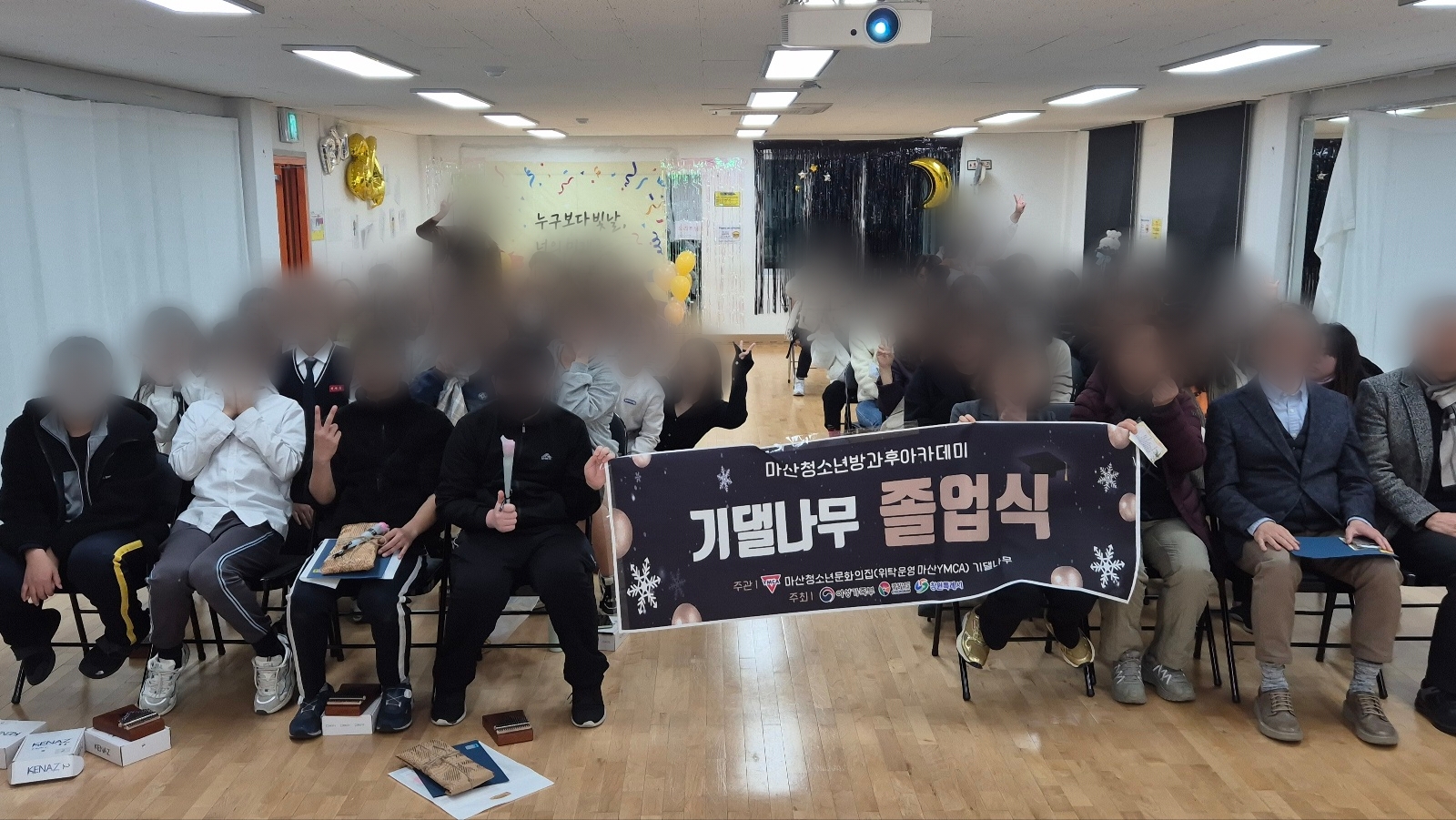 12월 27일, 마산청소년문화의집 3층 강당에서 기댈나무 졸업식 및 수료식이 따뜻한 분위기 속에서 개최되었습니다.