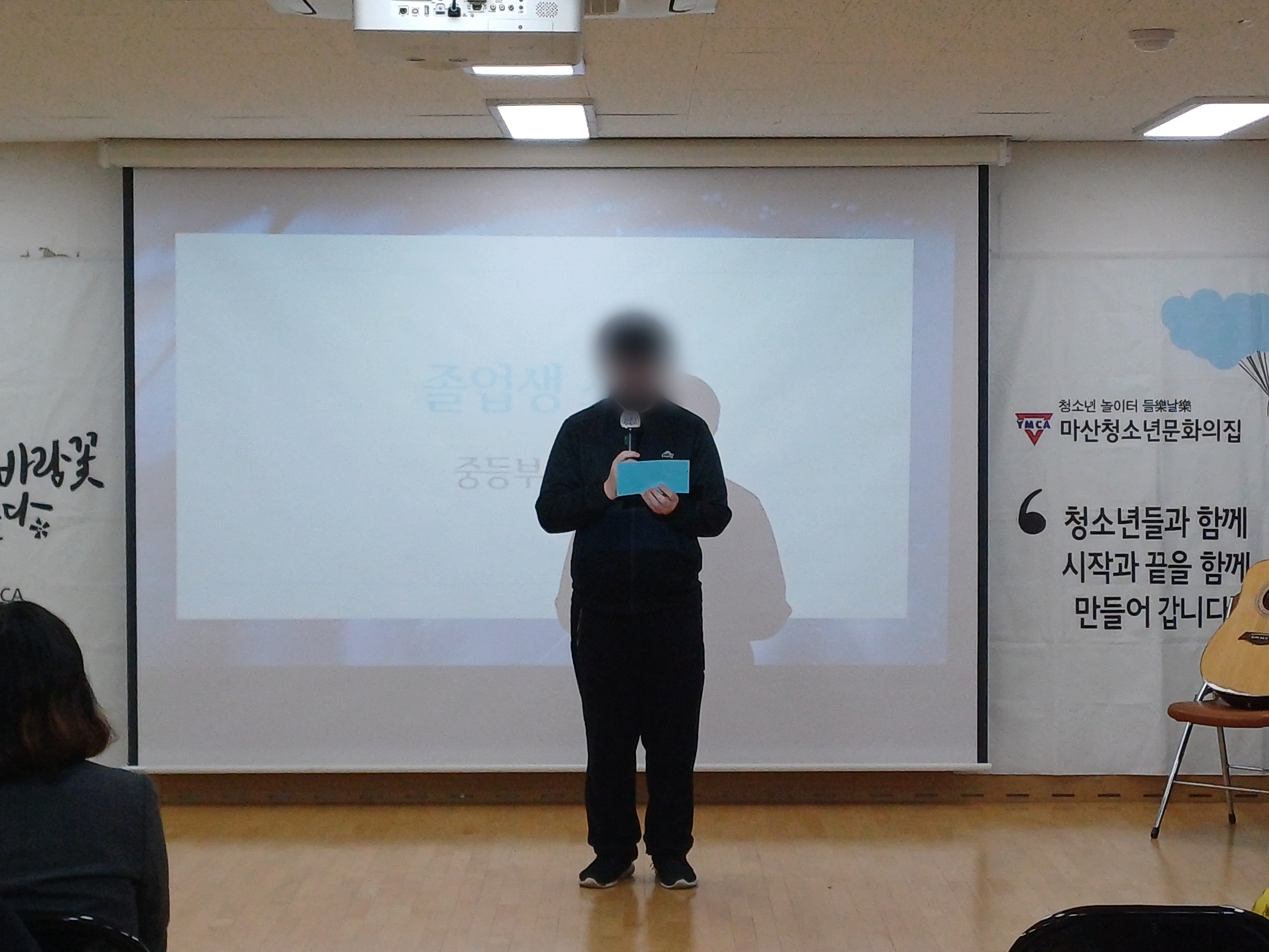 이날 행사에는 마산YMCA 김일영부이사장님과 청소년사업위원회 송정훈 위원장, 이윤기 사무총장 등 내빈들이 참석해 자리를 빛내주셨으며, 졸업과 수료를 축하하러 오신 보호자분들의 참여로 한층 더 북적이고 활기찬 시간이 되었습니다.