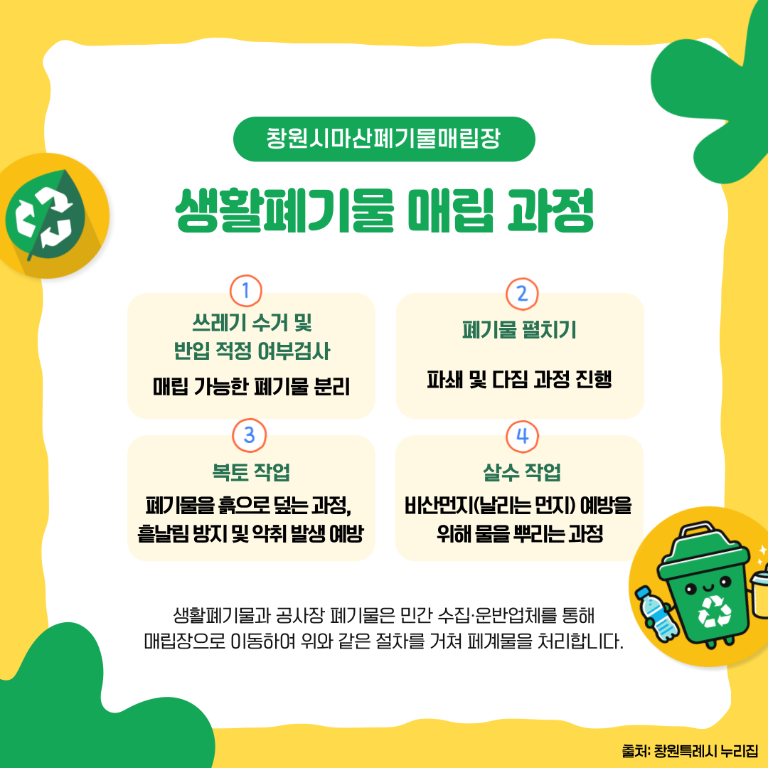 창원시에는 덕동 매립장 외에도 성산구 천선동의 천선생활폐기물매립장, 진해구 덕산동의 덕산생활폐기물매립장이 있어, 지역별로 생활폐기물을 보다 효율적으로 처리하고 있습니다.