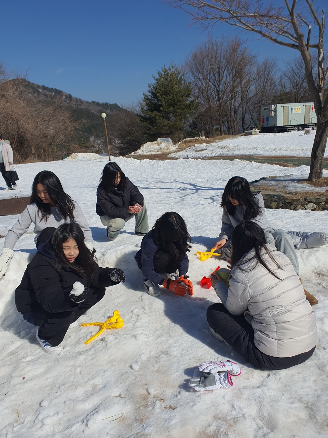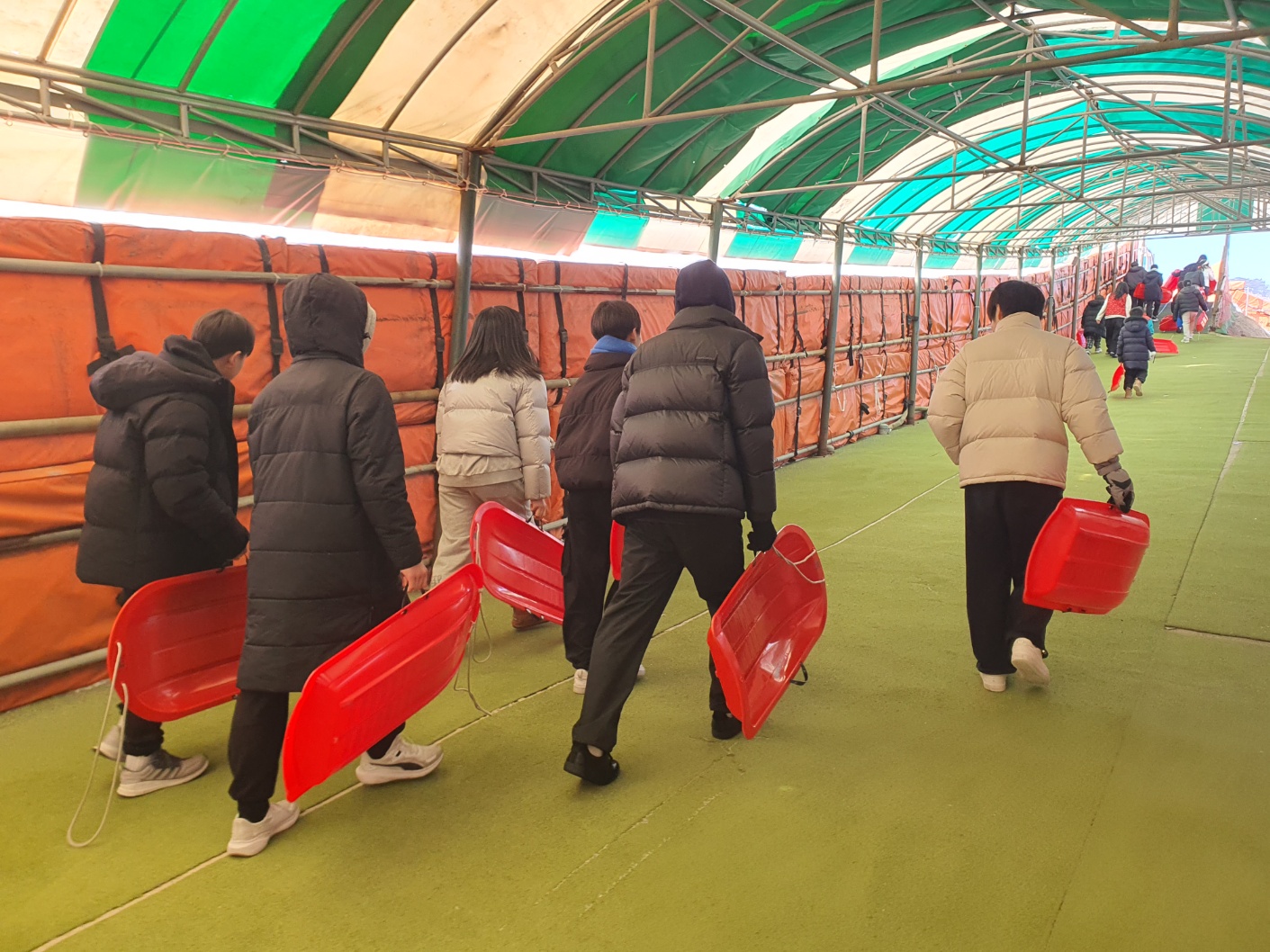 아이들은 눈썰매장에 도착하여 열심히 썰매를 이끌고 올라갑니다. 안전요원의 설명을 잘 들은 후 썰매를 타고 내려오는 아이들의 표정이 한껏 상기되어 있었고, 즐거운 웃음소리가 눈썰매장을 가득 채웠습니다. 신나게 썰매를 탄 후에는 눈싸움도 하고, 눈 만들기 용품으로 다양한 눈 모양 만들기 놀이를 하며 아이들은 추위를 잊은 듯 행복한 시간을 보냈습니다. 평소 눈을 잘 접할 수 없는 청소년들에게 눈썰매장은 최고의 놀이터가 되었습니다.
