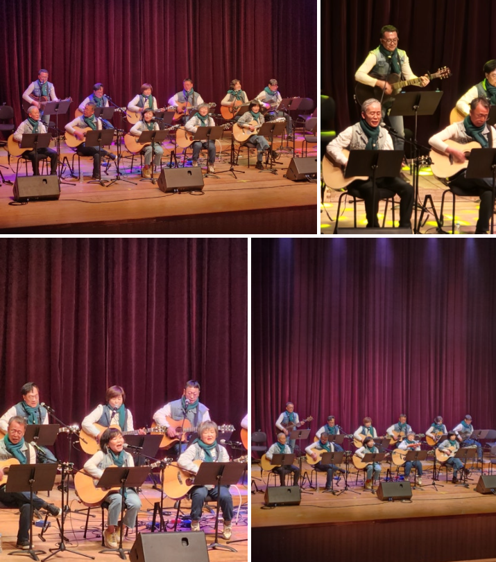 주민센터에서 강사 지도를 받는 사람들과 기타 동아리모임으로 너무나 다양하게 활동하고 있음을 알게 되었고 통기타를 치는 사람들이 이렇게 많다니~그리고 제각기 준비한 노래와 이색적인 악기, 프로다운 기타연주법 실력을 마음껏 뽐내었으며 여럿 함께 하는 모습들이 무척이나 멋스럽고 아름다웠다.