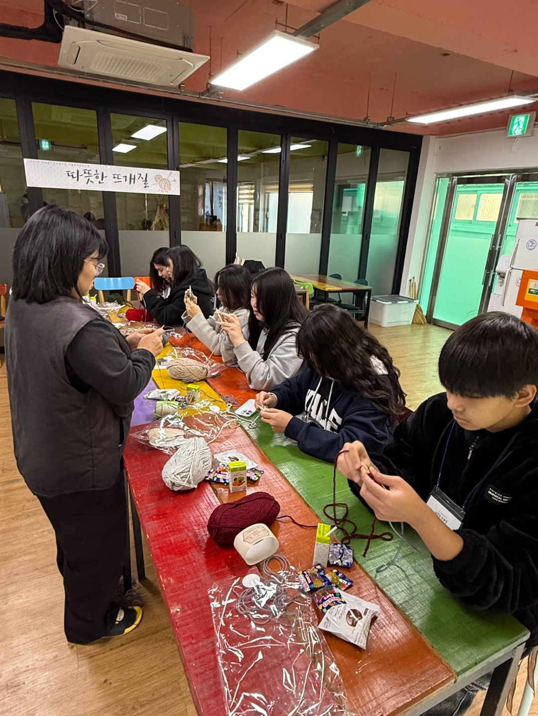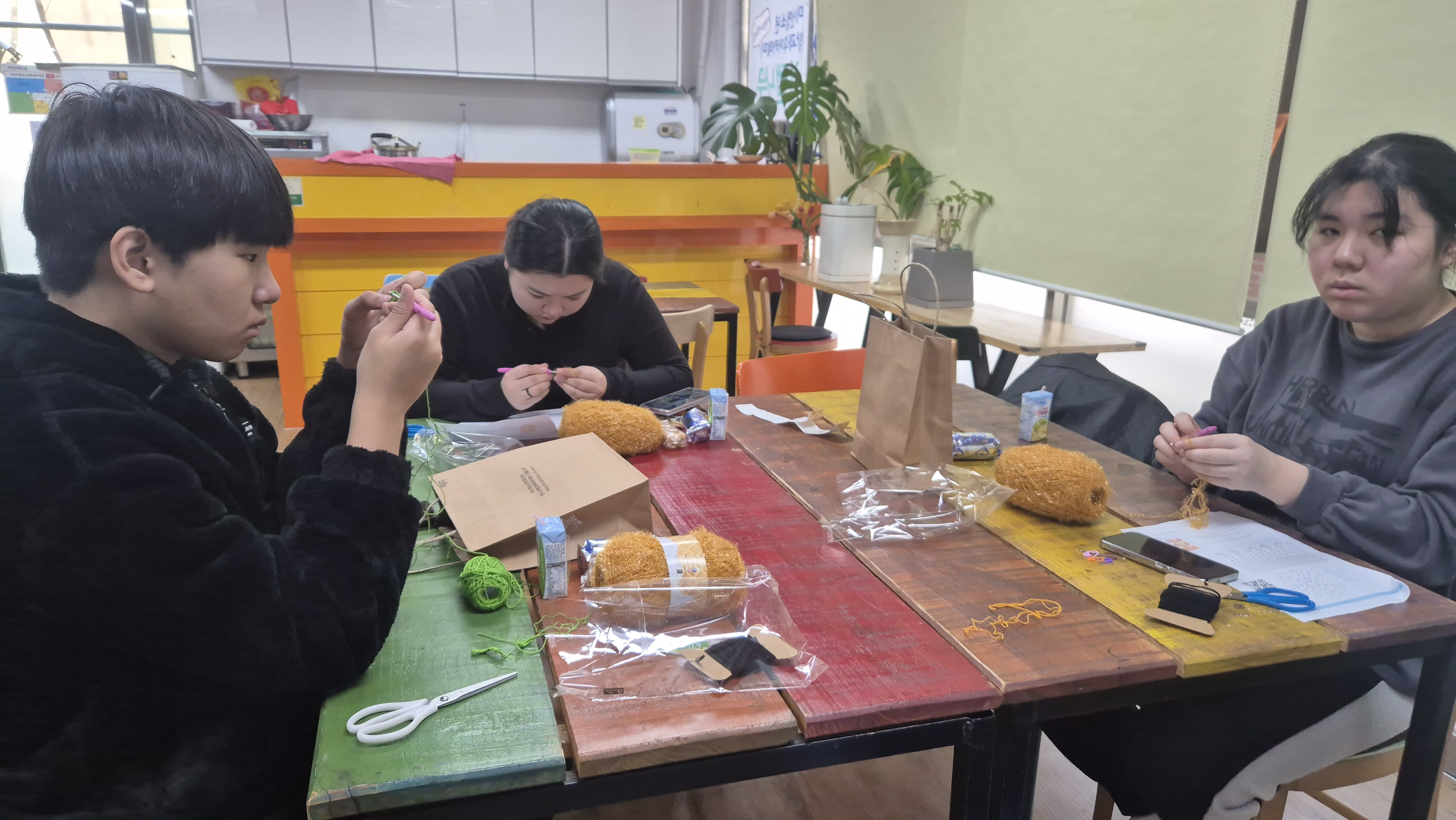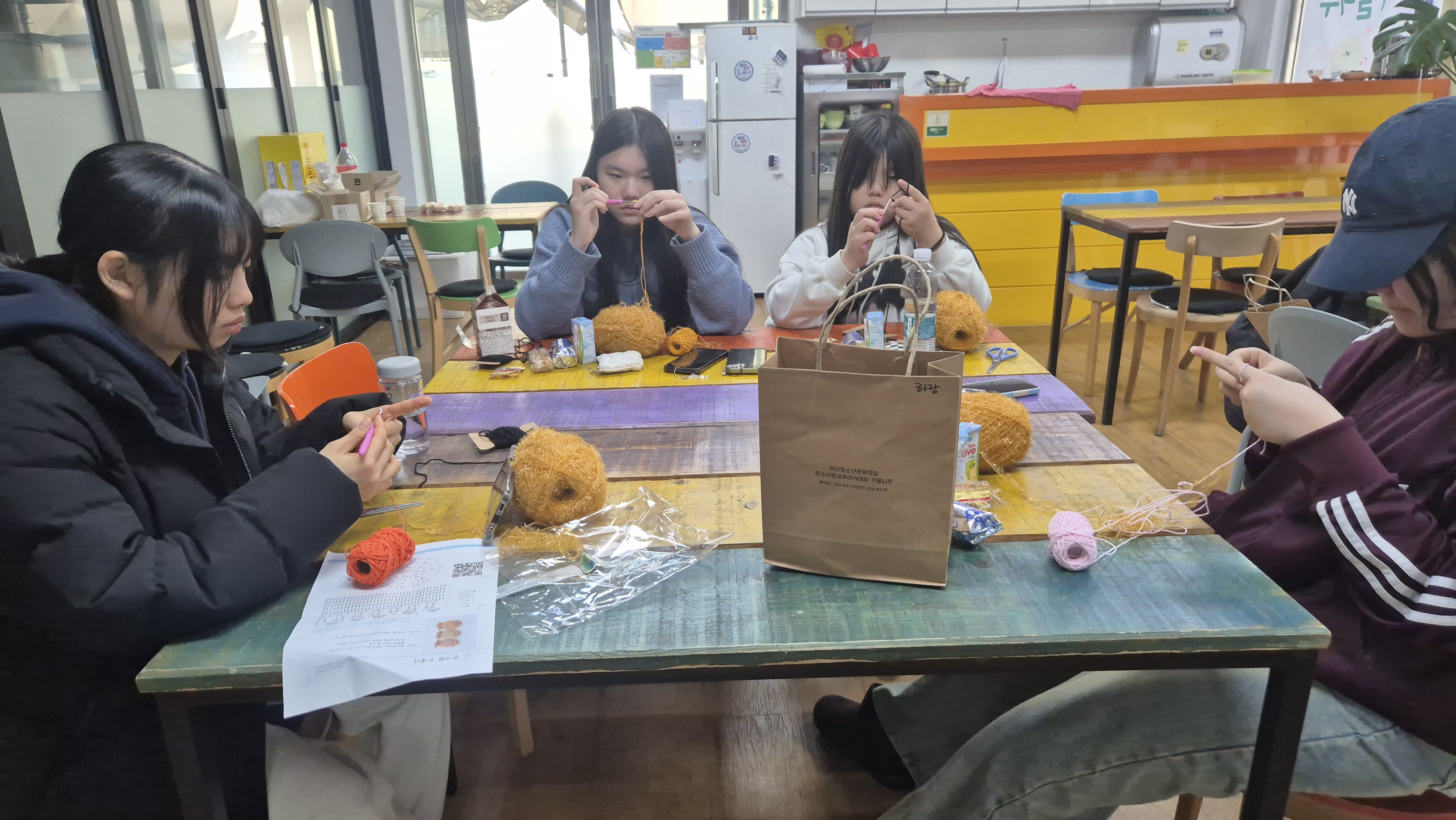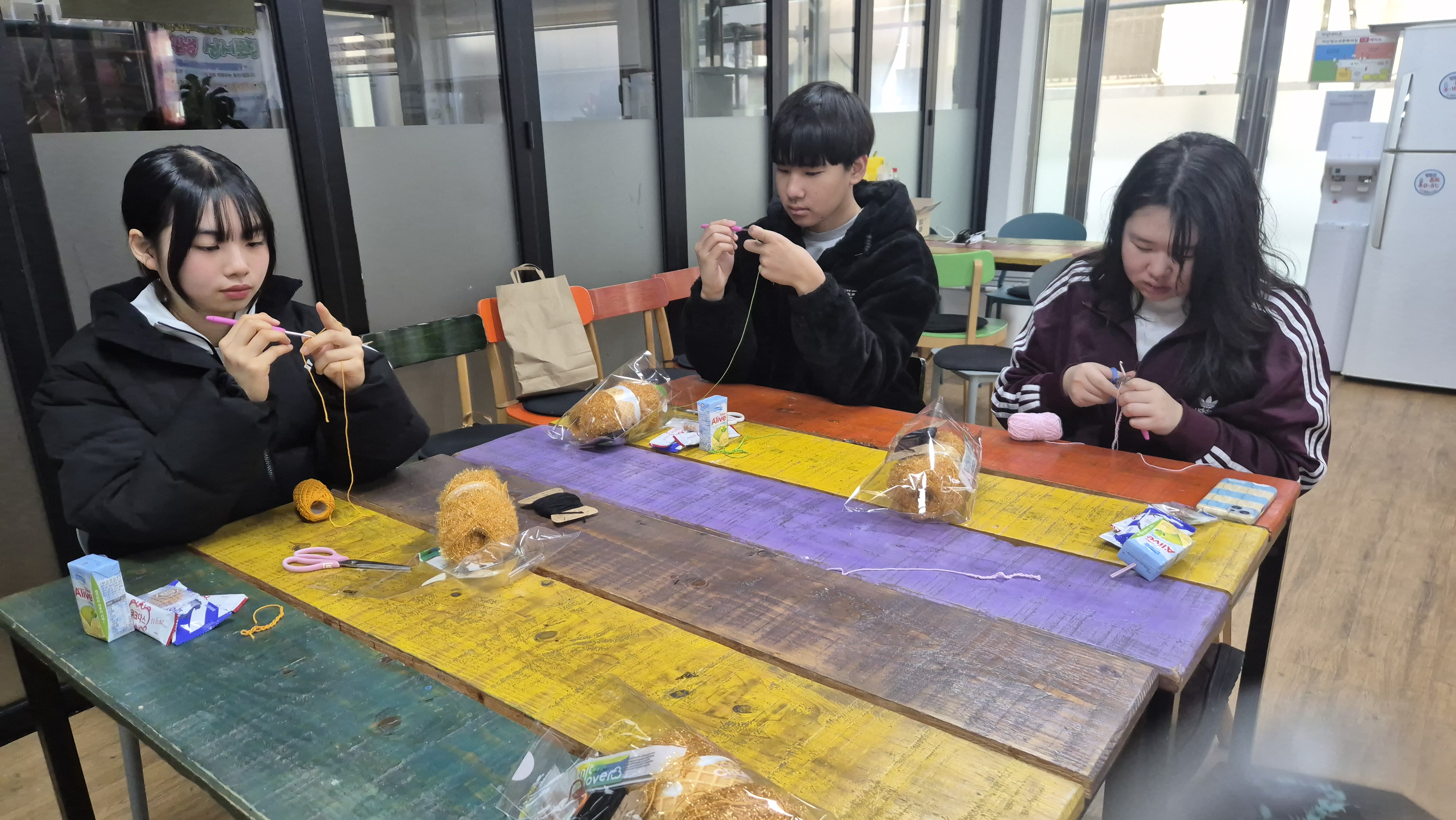 코바늘 뜨개질을 해본 청소년들이 단 1명도 없이 모두가 처음이었습니다.