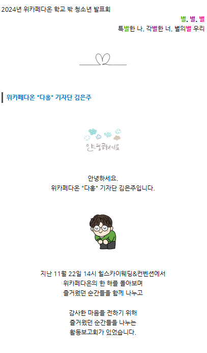 앞으로도 위카페다온과 함께 반짝반짝 빛날 다홍기자단에게 많은 관심과 격려 부탁드립니다 𓂅❤︎𐑡੭