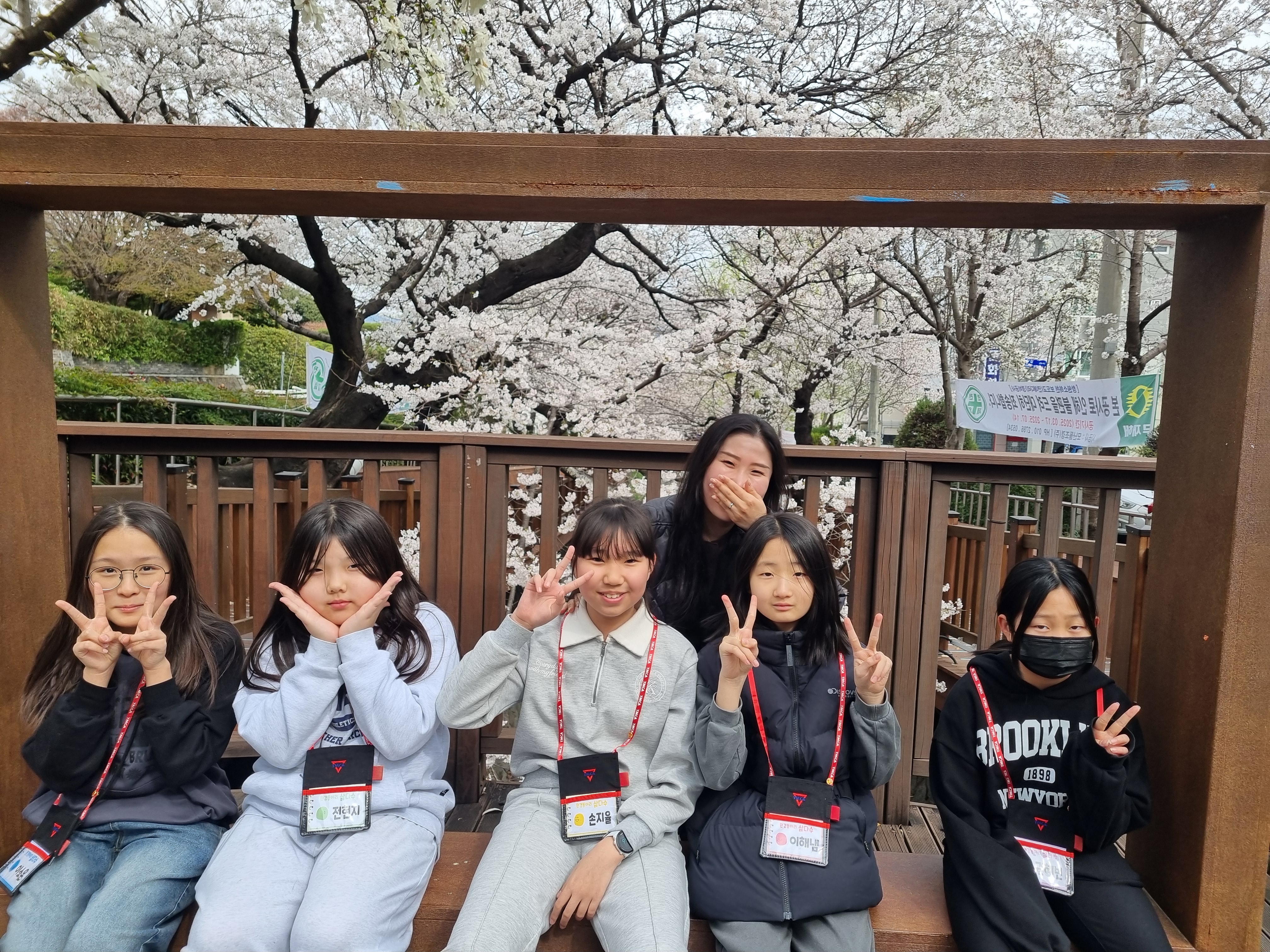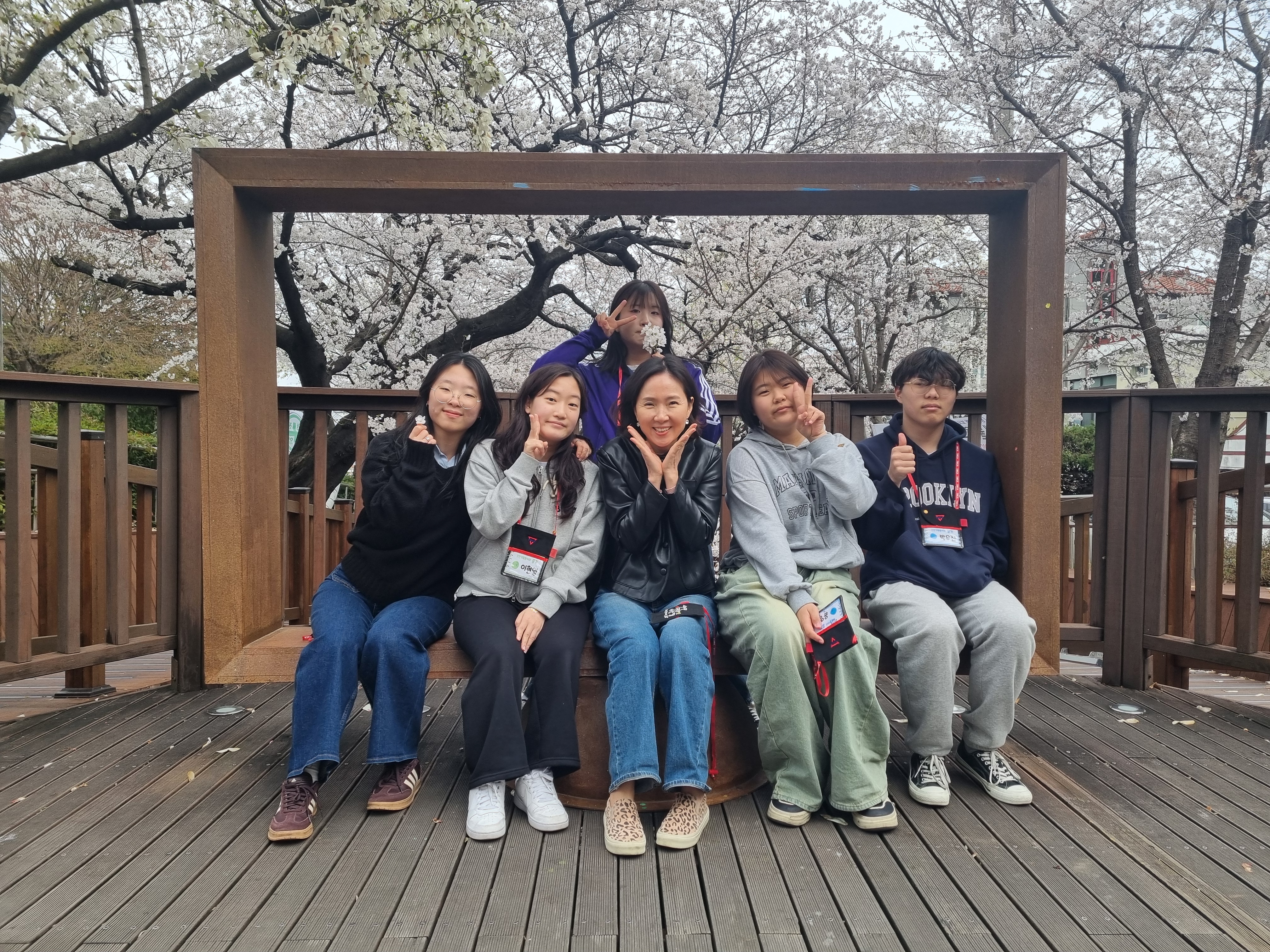벚꽃을 배경으로 단체사진 미션이 주어졌습니다 :D