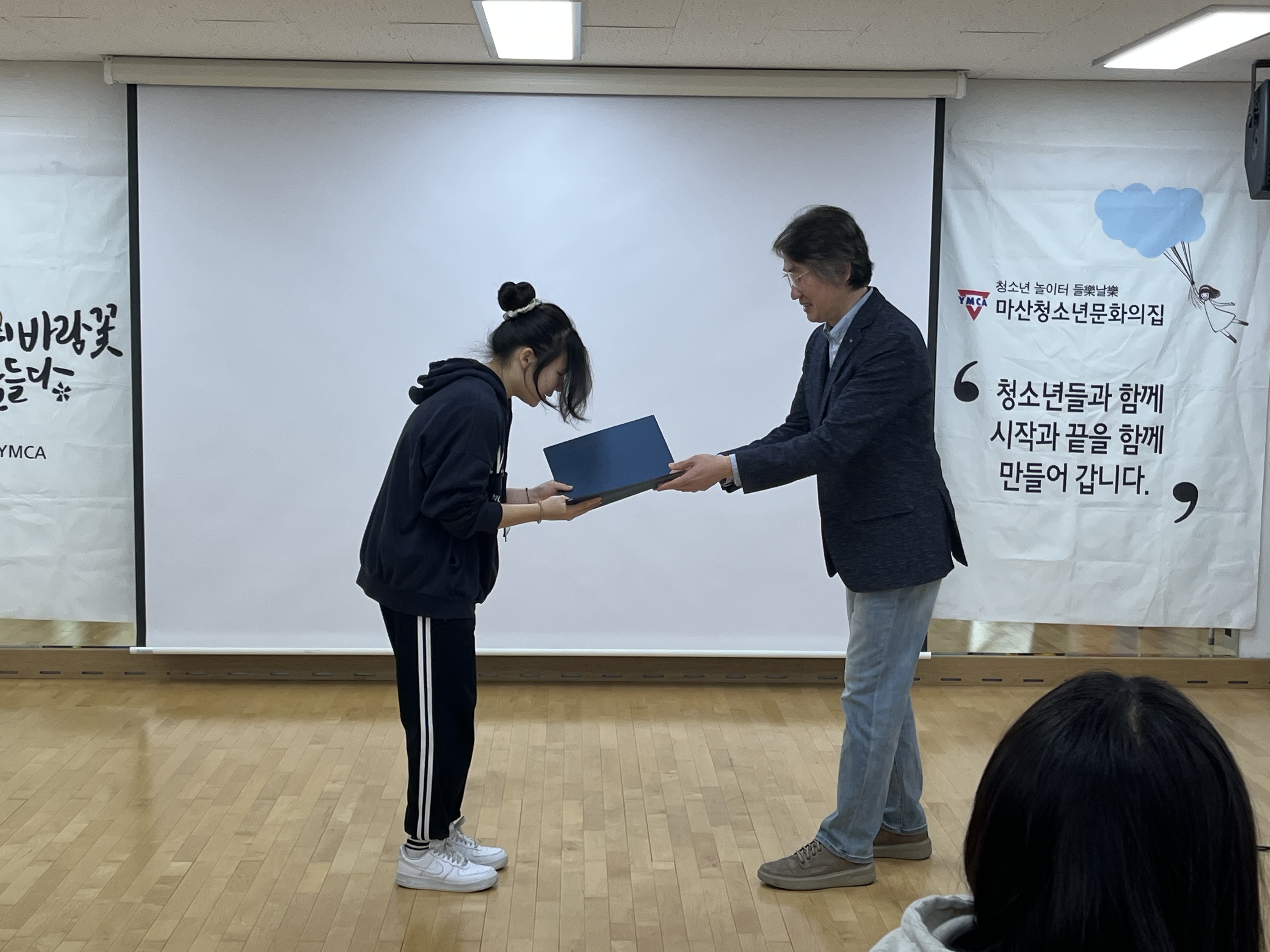 마산YMCA 청소년사업위원회 송정훈 위원장님이 함께해주셔서 청소년들에게 감동적인 축하인사를 전해주셨습니다.