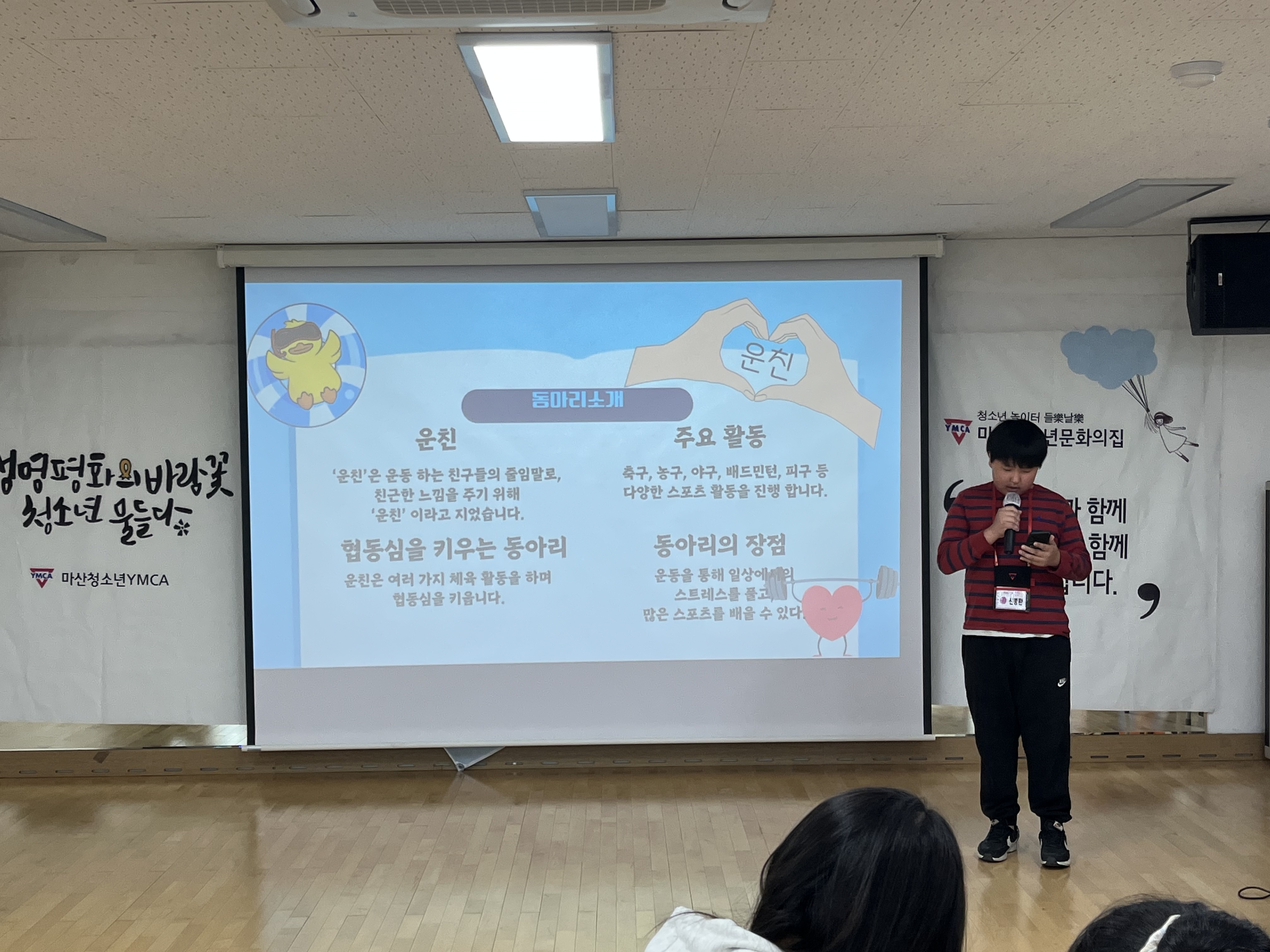 오늘이 지나고 연말 쯤 되면 청소년회원들은 이제 휴대폰을 보기 보다는 동아리 회원들과 눈을 맞추며 발표를 합니다.
