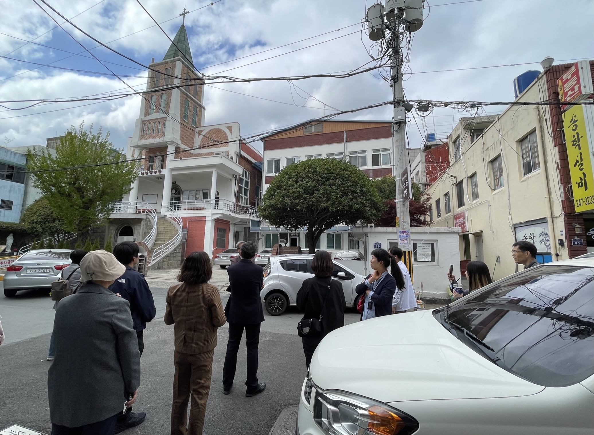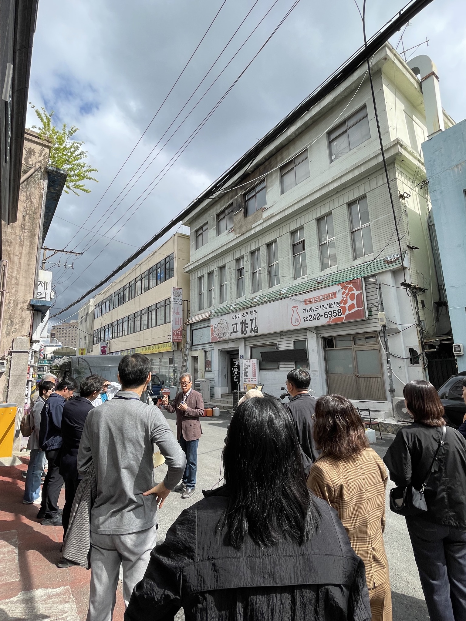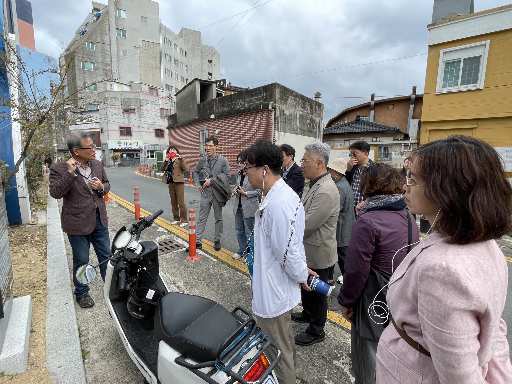 한편, 이날 정기총회에 앞서 20여명의 각 지역 대의원들과 함께 마산원도심 근현대사 역사투어를 진행하였습니다. 허정도 전 이사장이 가이드를 맡아 ①260년 마산길→②옛 민의소공회당(시민극장)→③부마민주항쟁 발원지(창동네거리)→④마산창 터→⑤남성동성당→⑥원동무역사옥→⑦김명시장군 생가터→⑧소녀상→⑨3·15의거 발원지→⑩마산형무소 터를 둘러보면서 일제 치하 독립운동 유적지, 그리고 315와 1018로 이어지는 근현대 역사의 현장을 답사하였습니다.