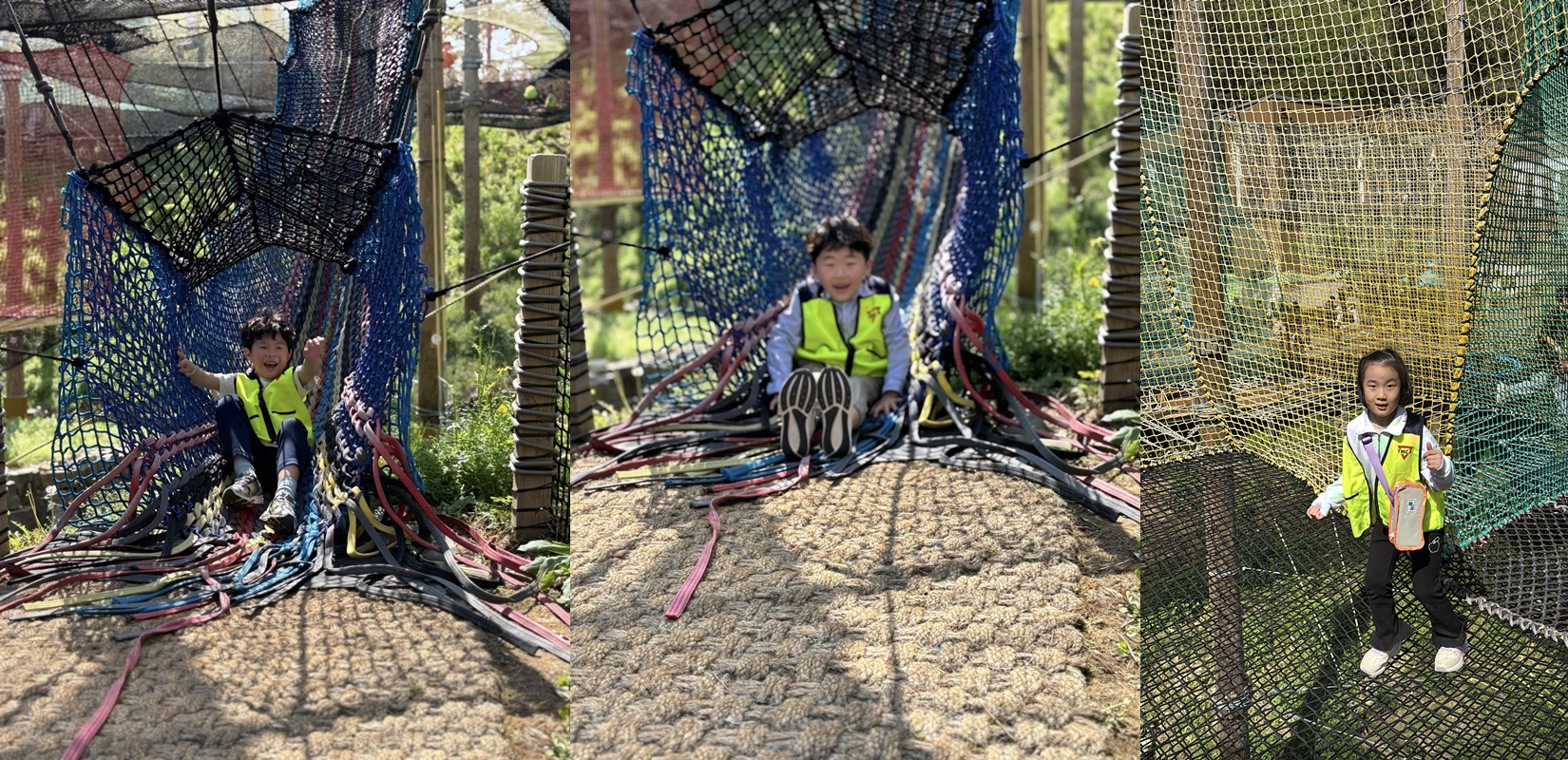 '월아산 숲속의 진주'는 잘 조성된 공간이었습니다. 아이들은 네트 어드벤처에서 신나게 뛰어놀았어요. 너무 열심히 놀아서인지, 네트에 피부가 쓸린 친구도 있어 조금은 속상하기도 했습니다.