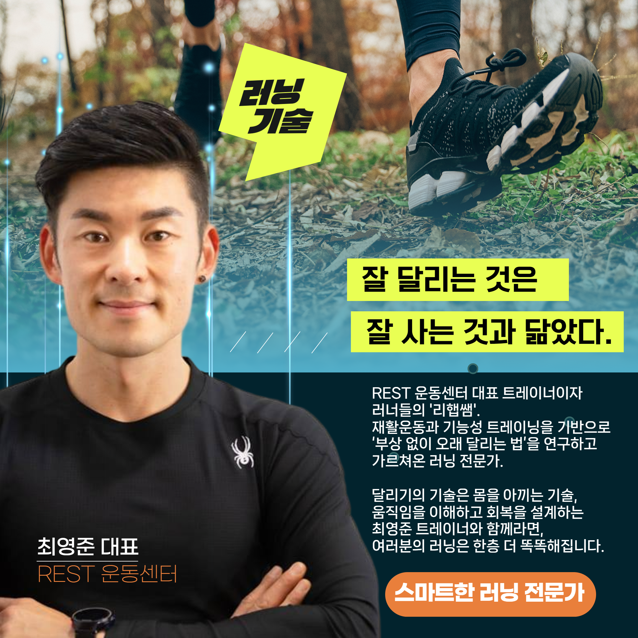 몸을 아끼고 움직임을 이해하는 스마트 러닝 전문가 부상 없이 오래 달리는 법, 그리고 삶을 리듬 있게 사는 법을 함께 배워봅니다.