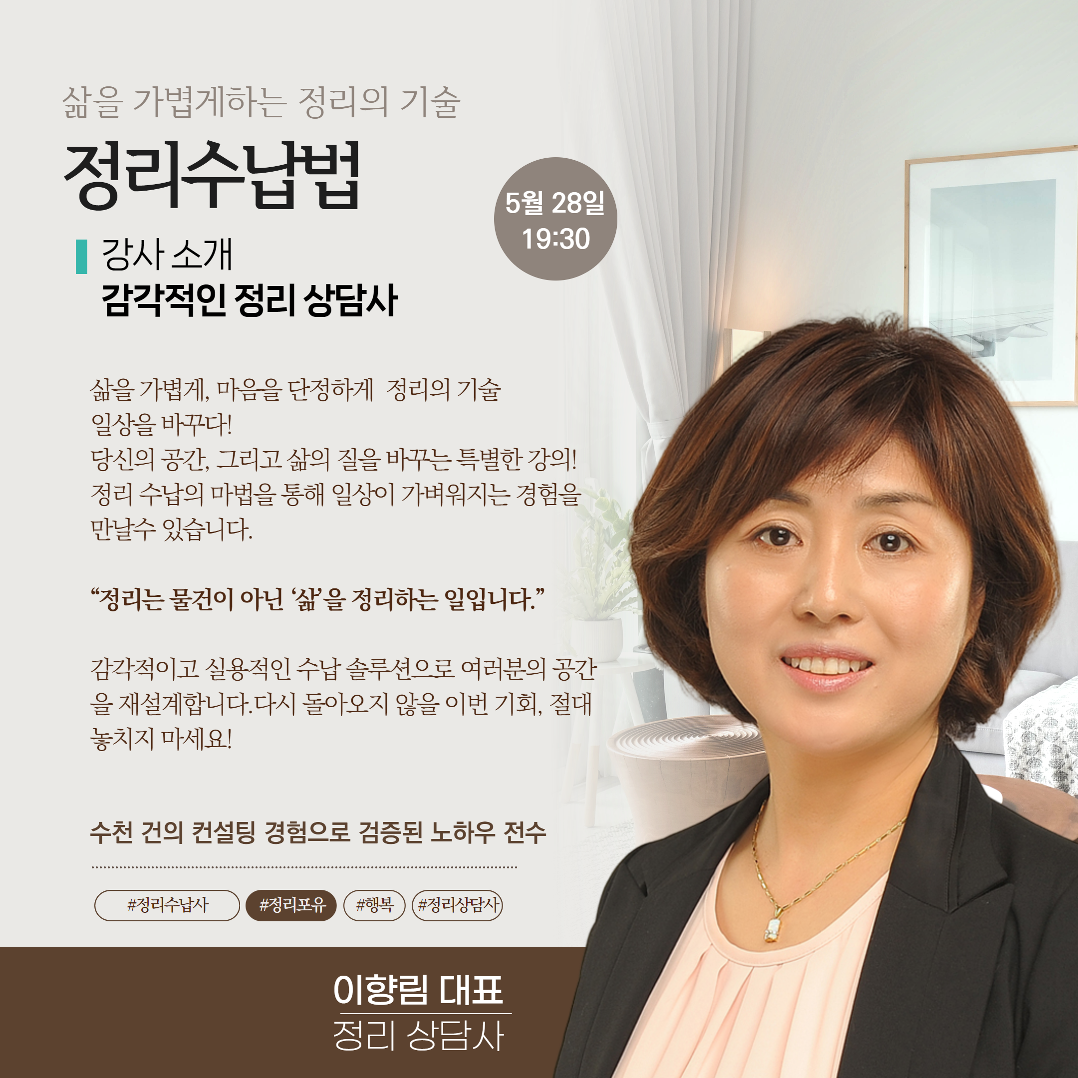 “정리수납법: 생활과 마음 챙김”/  5월 28일(수) 19:30
