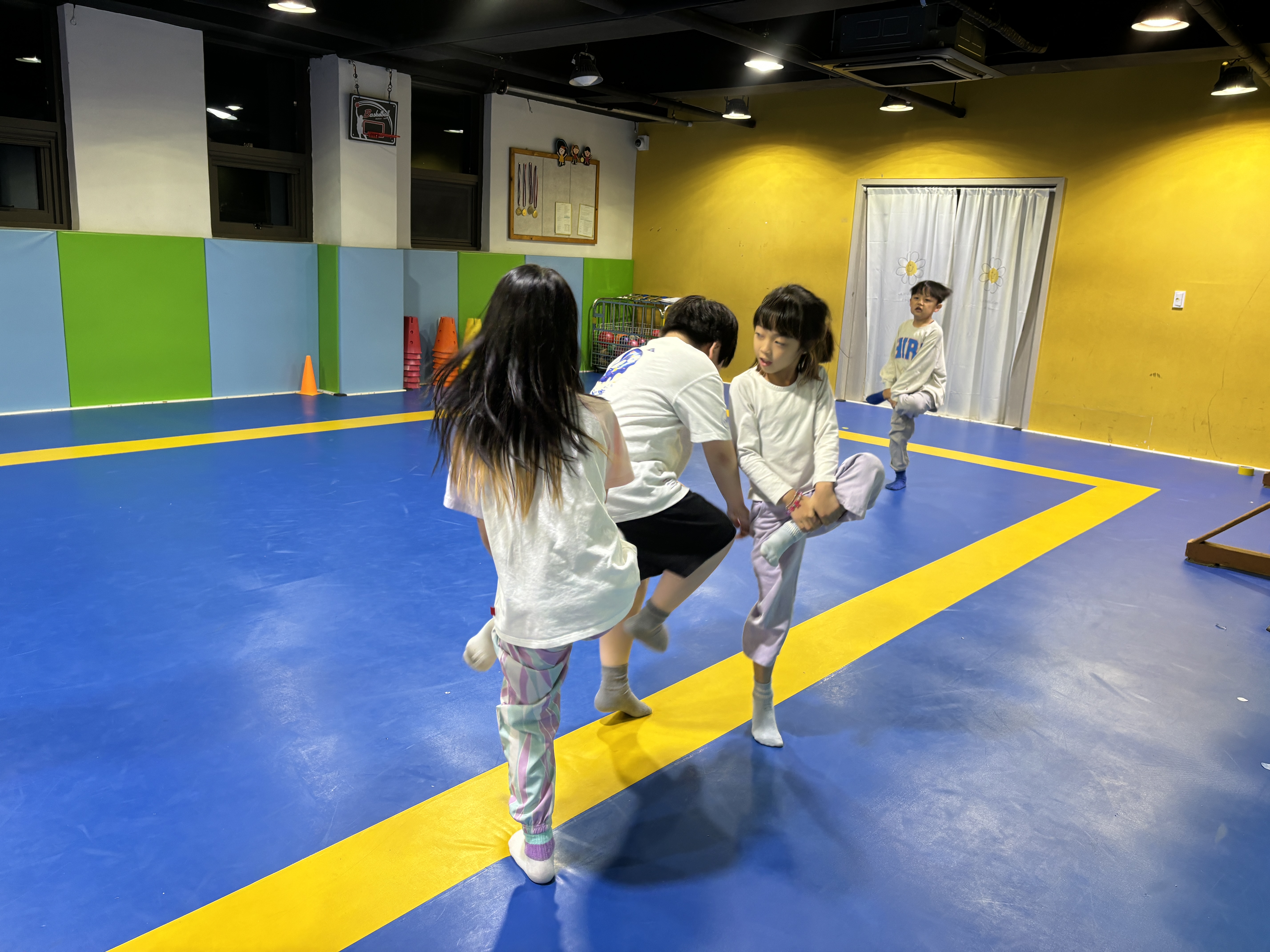 체육실에서 땀이 쭈욱 나는 건강한 몸놀이도 잔뜩했어요 !