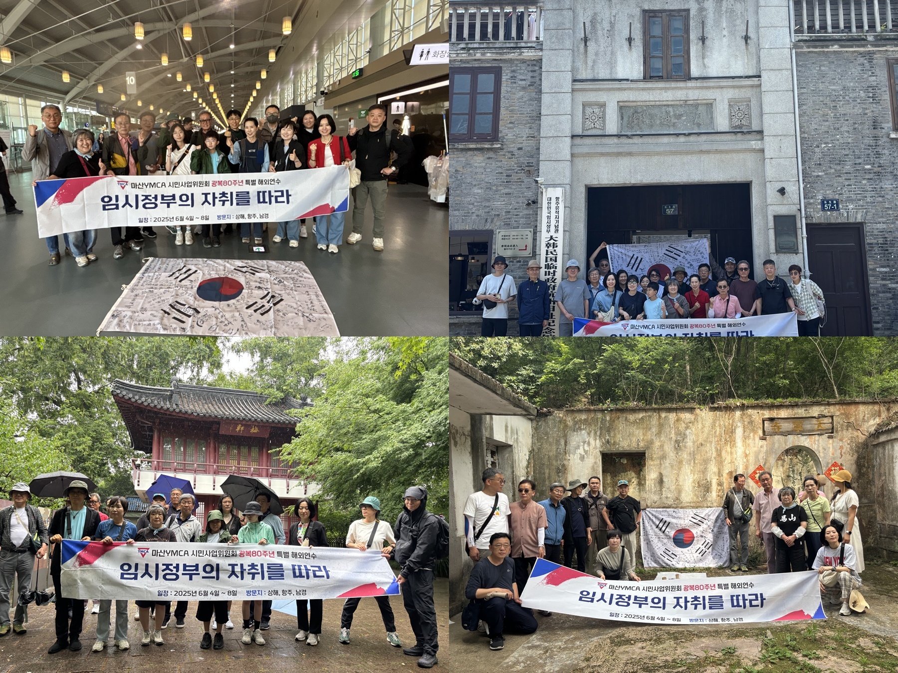 2025년, 마산YMCA 시민사업위원회는 광복 80주년을 기념하여 상해, 항주, 남경을 방문하는 특별한 해외연수를 떠났습니다. 시민사업위원회는 2년에 한 번 해외연수를 진행해왔으며, 2년 전에는 몽골을 찾았습니다. 올해는 ‘임시정부의 자취를 따라’라는 주제로, 대한민국 임시정부 유적지를 중심으로 한 중국 방문이 결정되었습니다. 출발에 앞서 이승준 위원이 준비한 태극기와 함께 기념촬영을 마치고, 상해로 향했습니다.