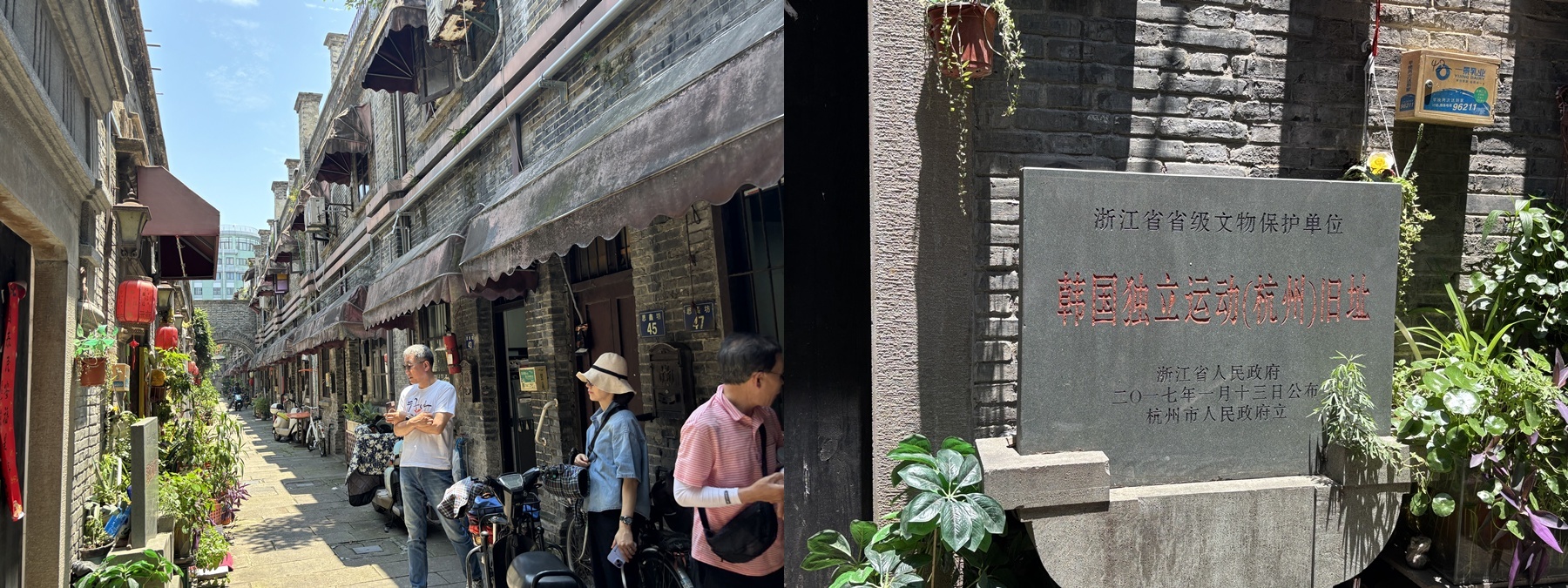 다음은 한국독립당의 당사, 사흠방을 찾았습니다. 상해에서 항주로 임시정부 청사가 옮겨지면서 당사도 함께 이사한 공간으로, 당시 주소는 34호, 40호, 41호입니다. 건물은 옛모습 그대로 보전되어 있었고, 표지석이 그 자리를 알려주고 있었습니다. 이 소중한 장소가 더 많은 사람들에게 알려지길 바라는 마음이 들었습니다.