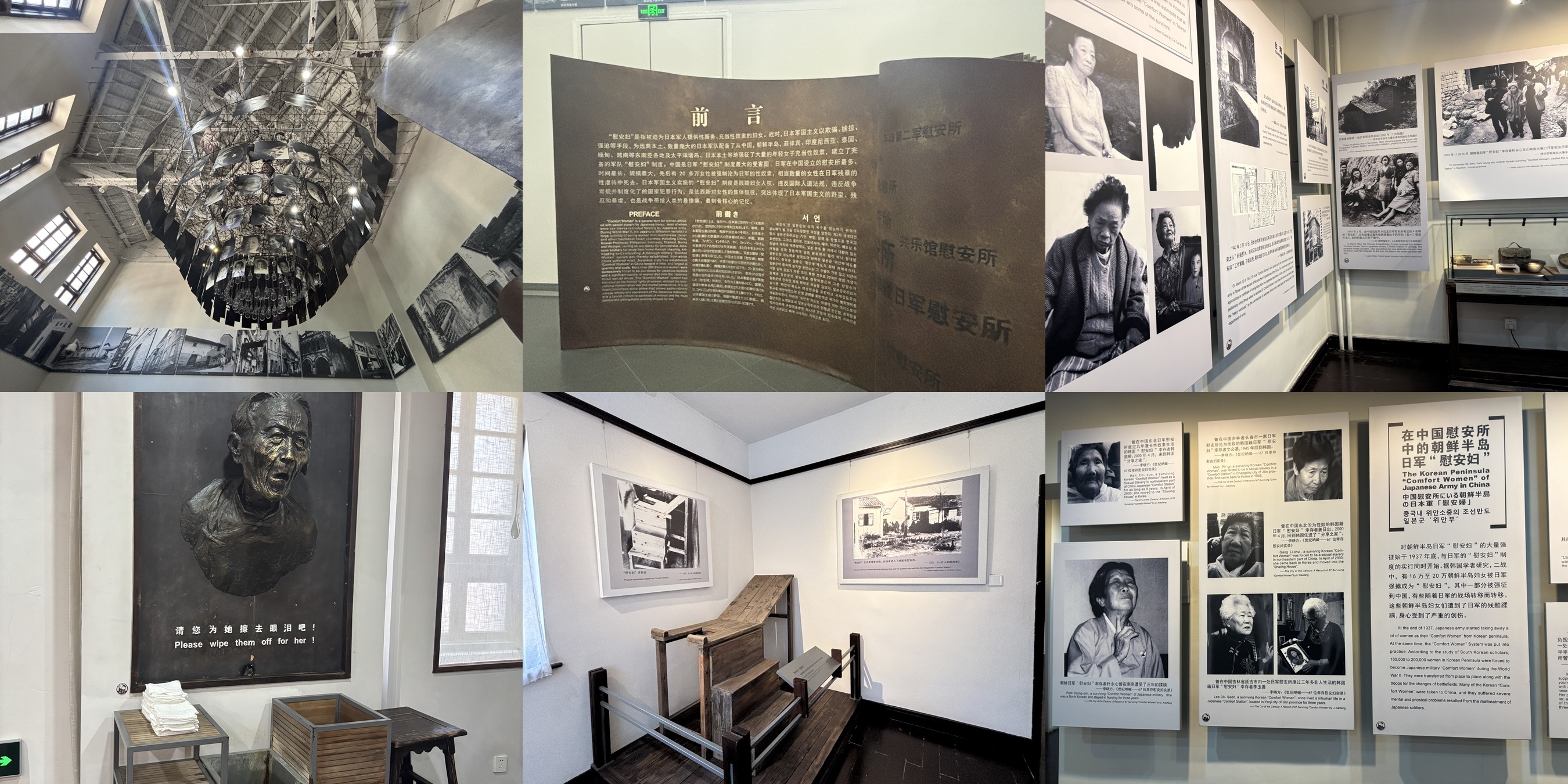 리지샹 위안소는 좁은 골목길을 따라 들어서면 낮은 벽돌 건물들과 어두운 방들이 이어진다. 아무 말도 하지 않아도, 그 공간이 품고 있는 시간의 고통은 공기를 통해 전해졌다. 희미하게 남은 흔적들과 전시물, 그리고 벽에 걸린 생존자의 눈동자 하나하나가, 무언의 외침처럼 느껴졌다. 감정적으로 견디기 너무 힘든 곳이었다.