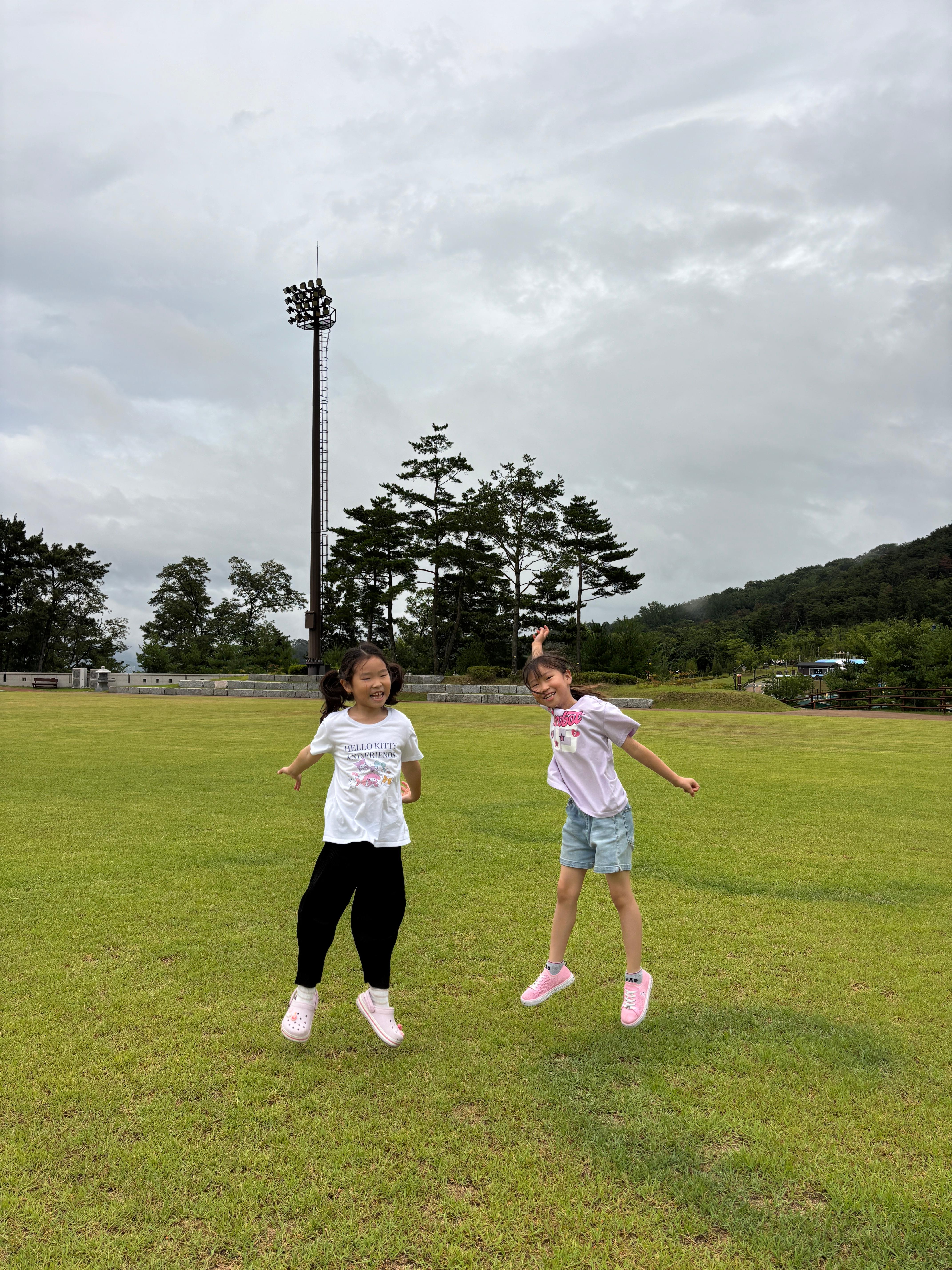 여치와 청개구리가 가득한 잔디밭에서 아이들과 시간가는 줄 모르고 이리 뛰고 저리 뛰며 놀았네요.