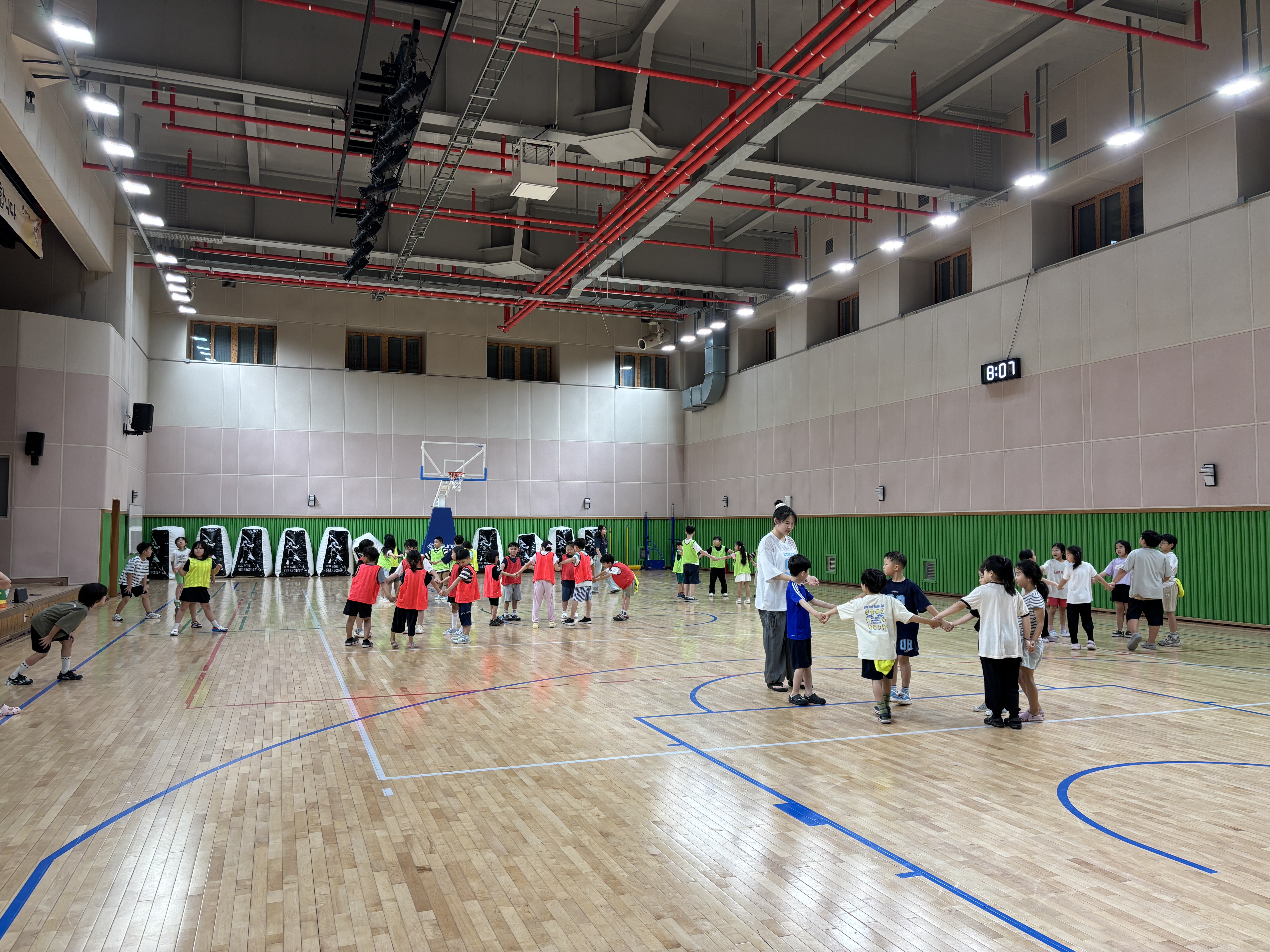 원래 강당에서 협동 몸놀이가 예정되어있었는데