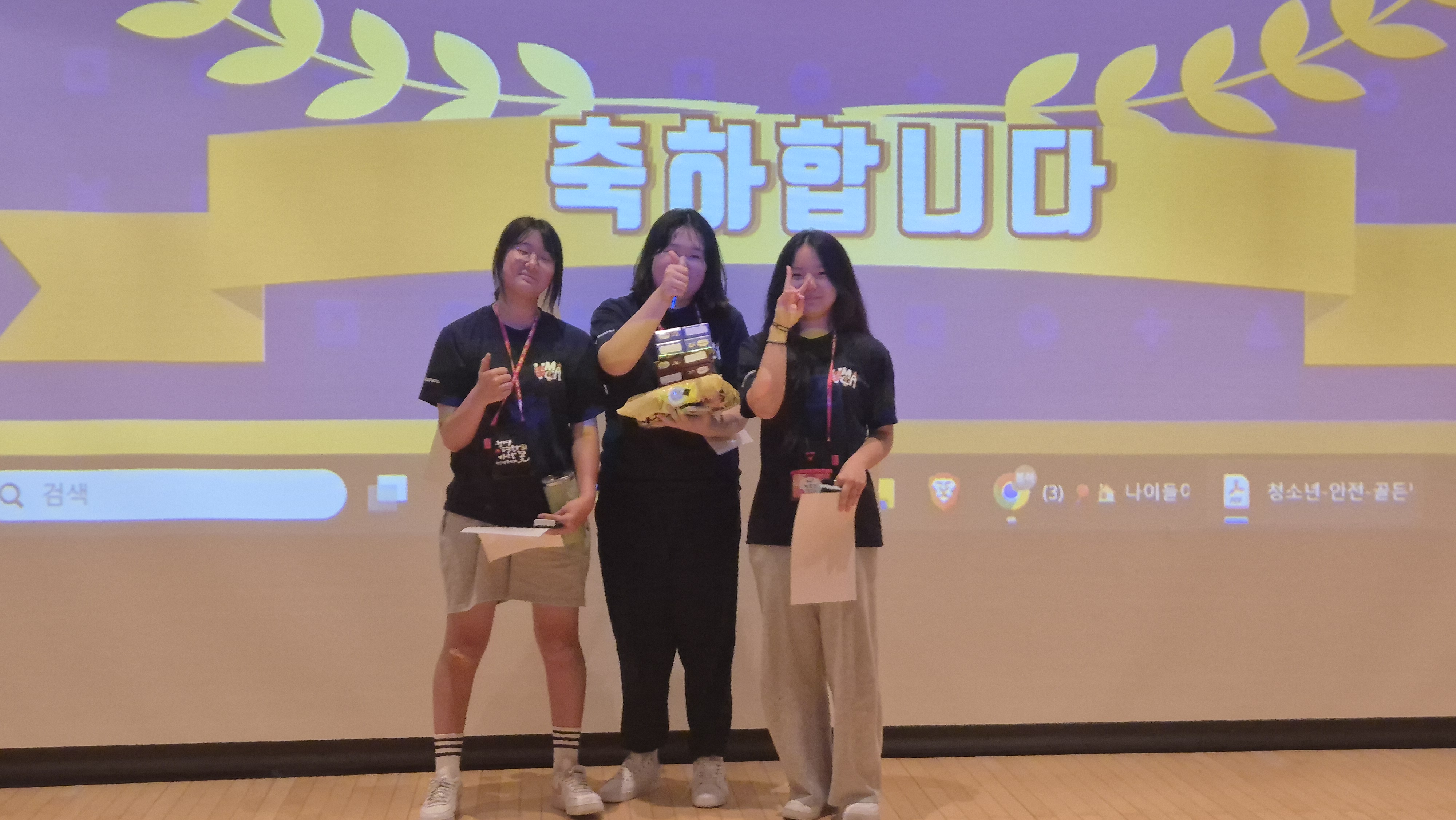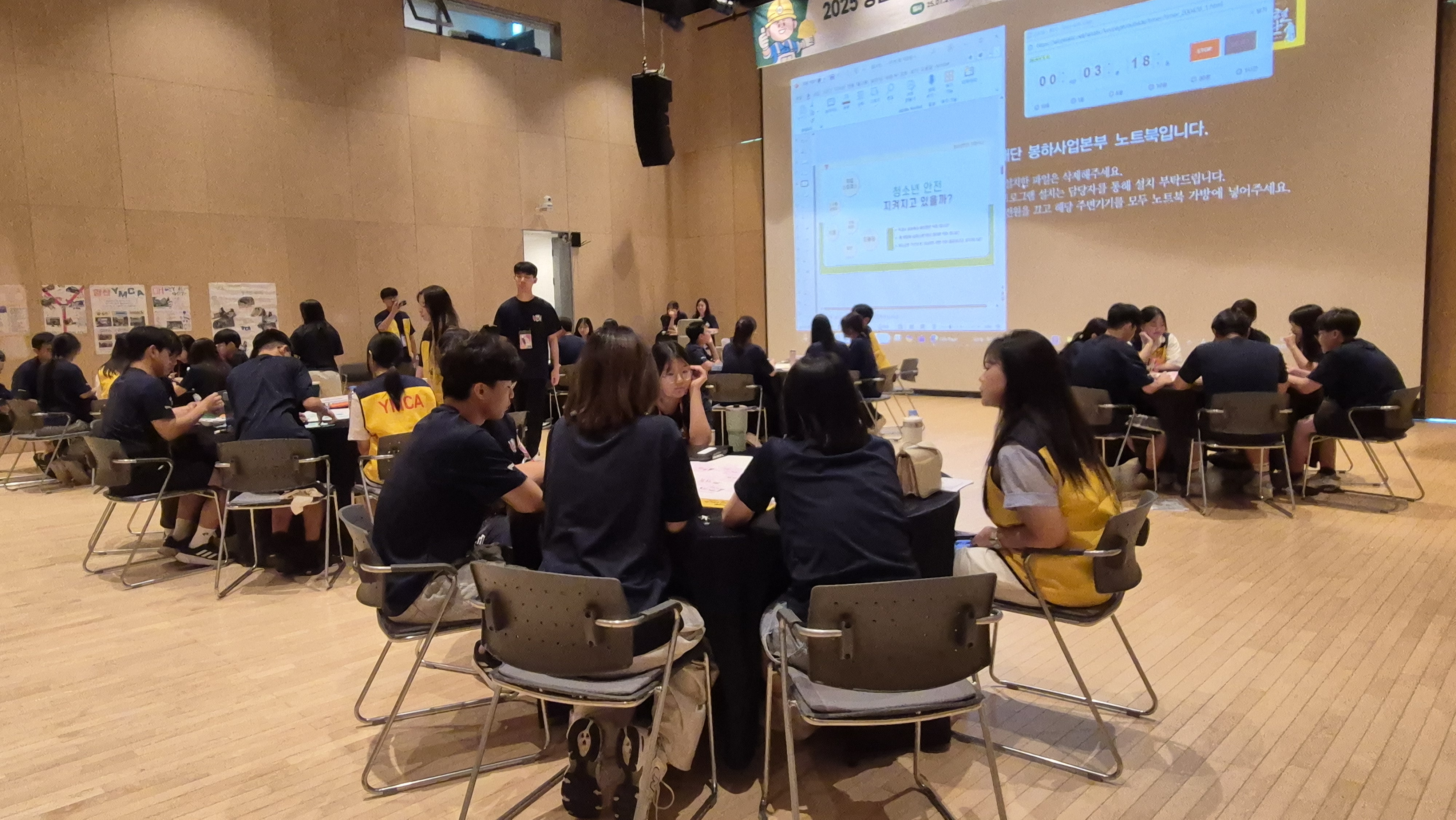 오후에는 청소년 안전 골든벨이 진행되었습니다. 전날 마산청소년들이 취침시간을 지키지 않아