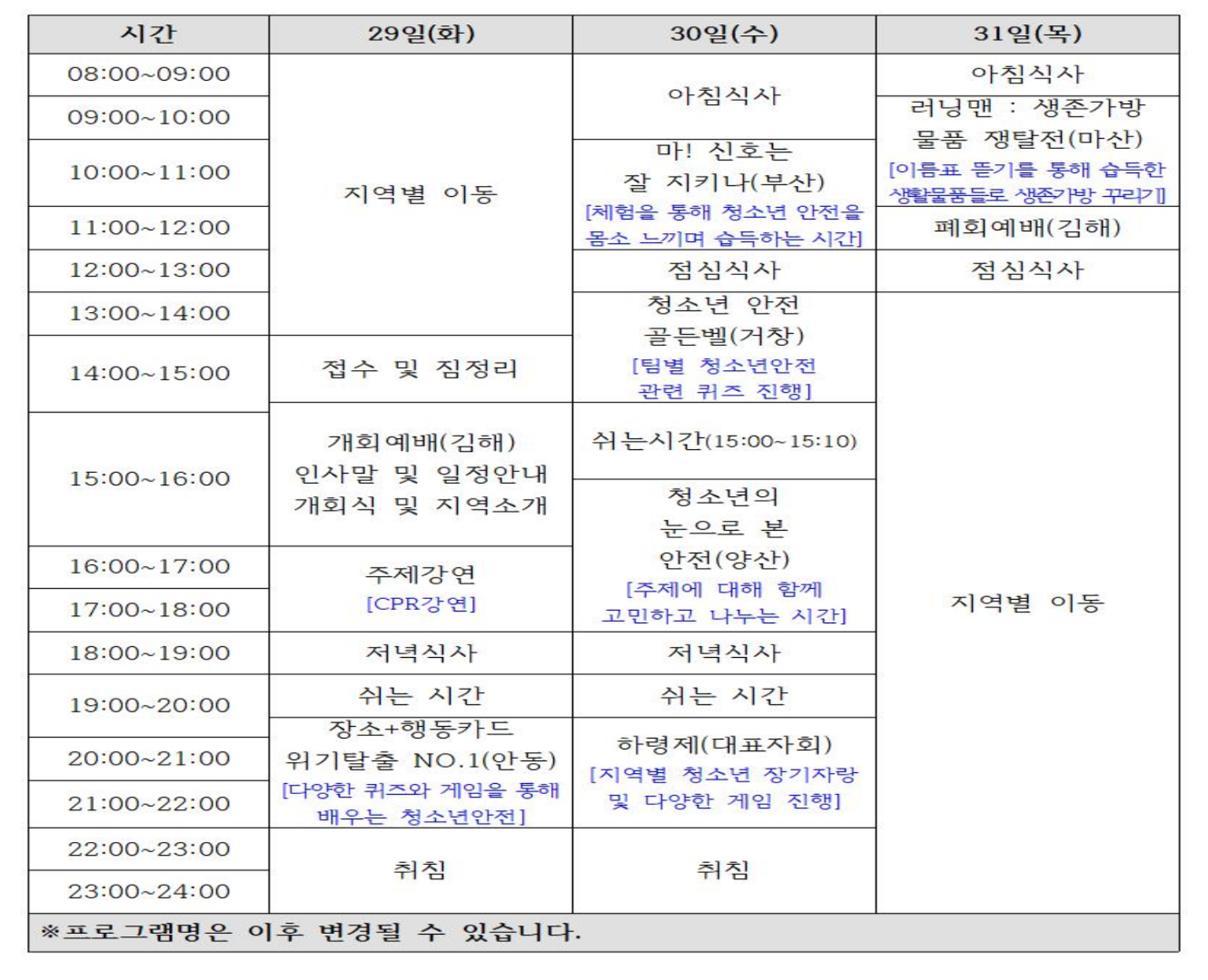 올해 40회를 맞이하는 영남권역청소년YMCA하령회 청소년, 안전지켰수다가 진행되었습니다.
