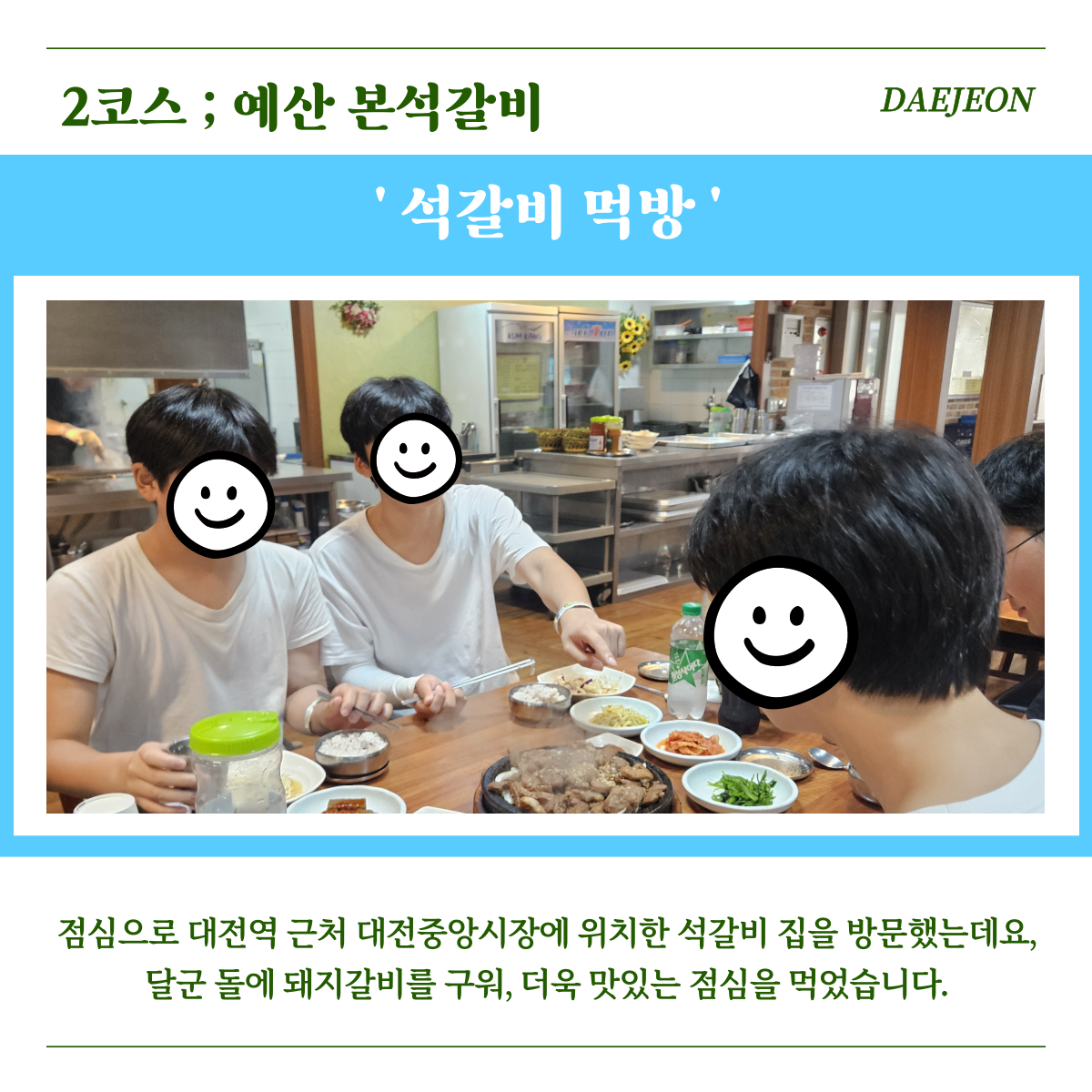 한 시간가량 걷고 나니 배꼽시계가 울려, 맛있는 석갈비로 점심을 든든히 채웠습니다