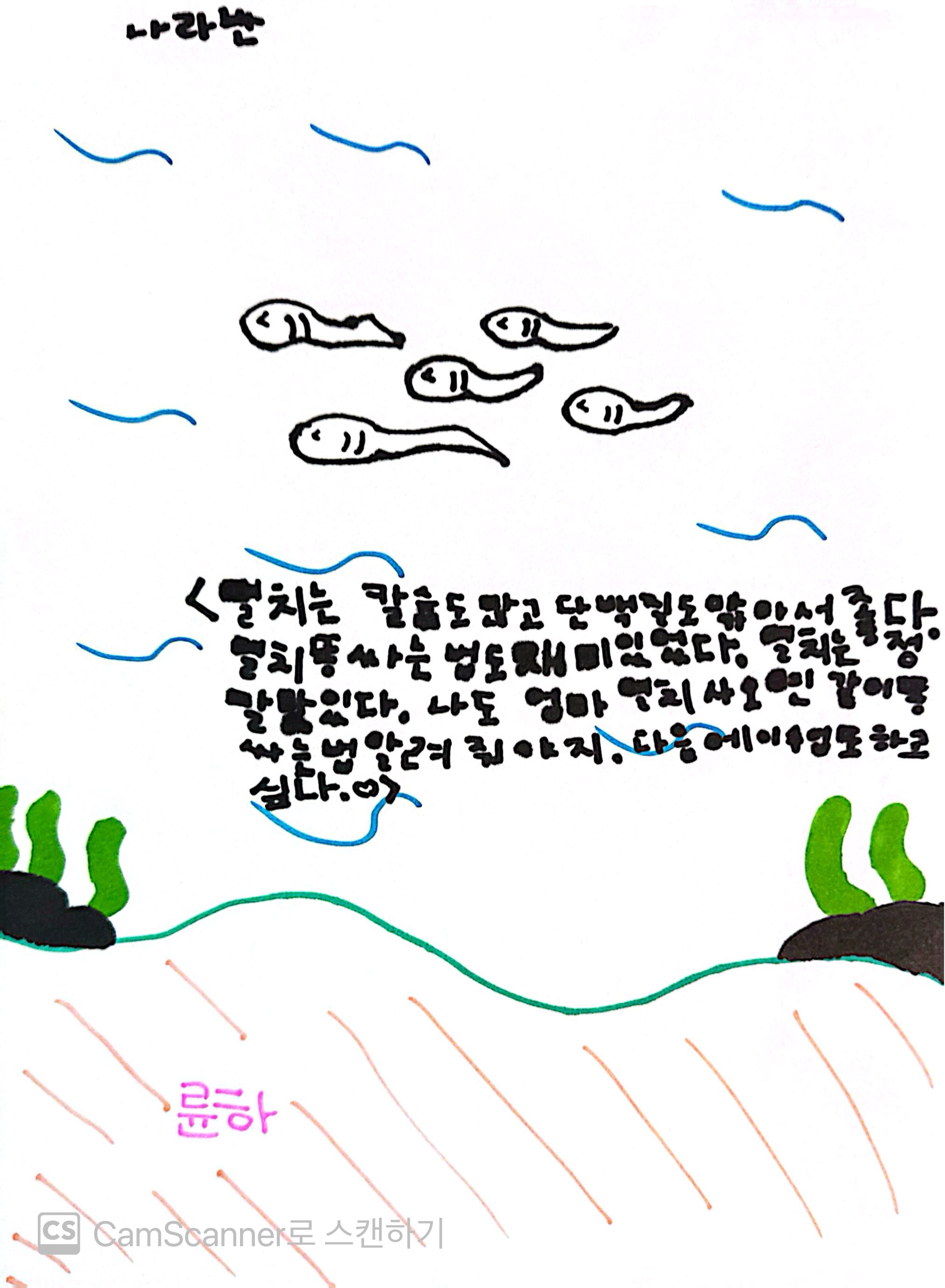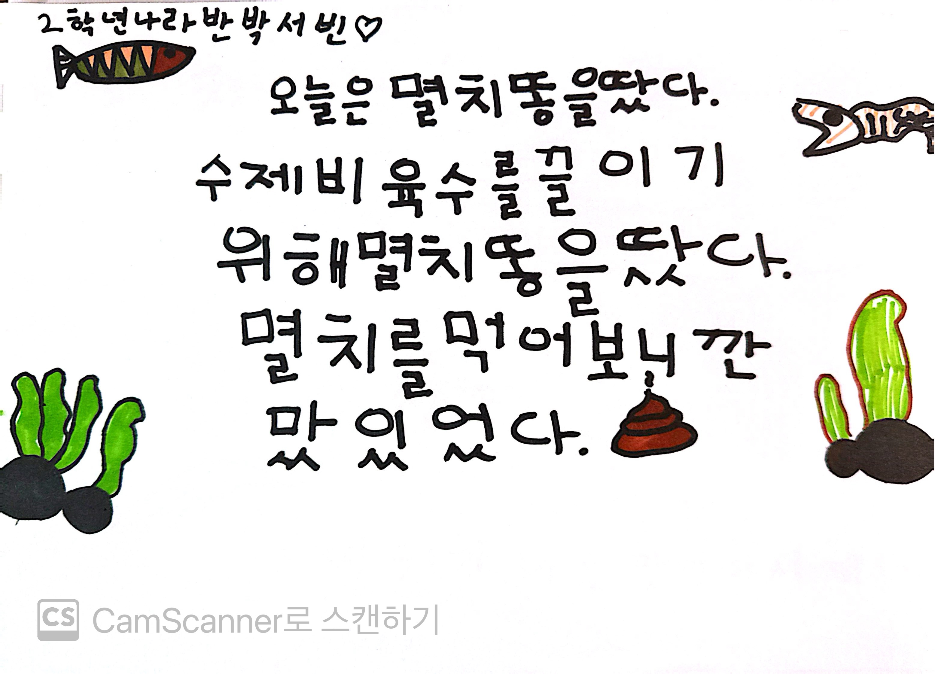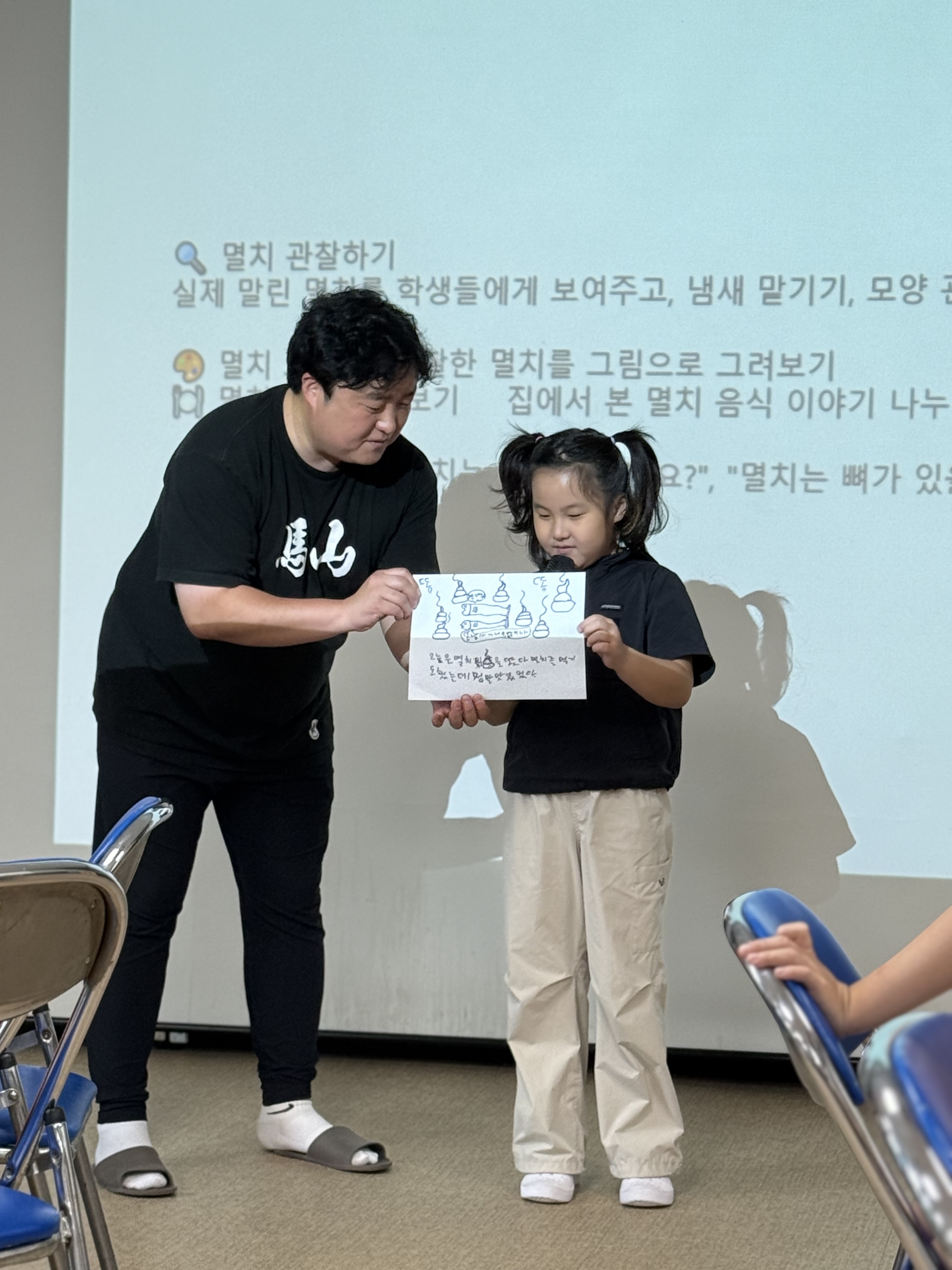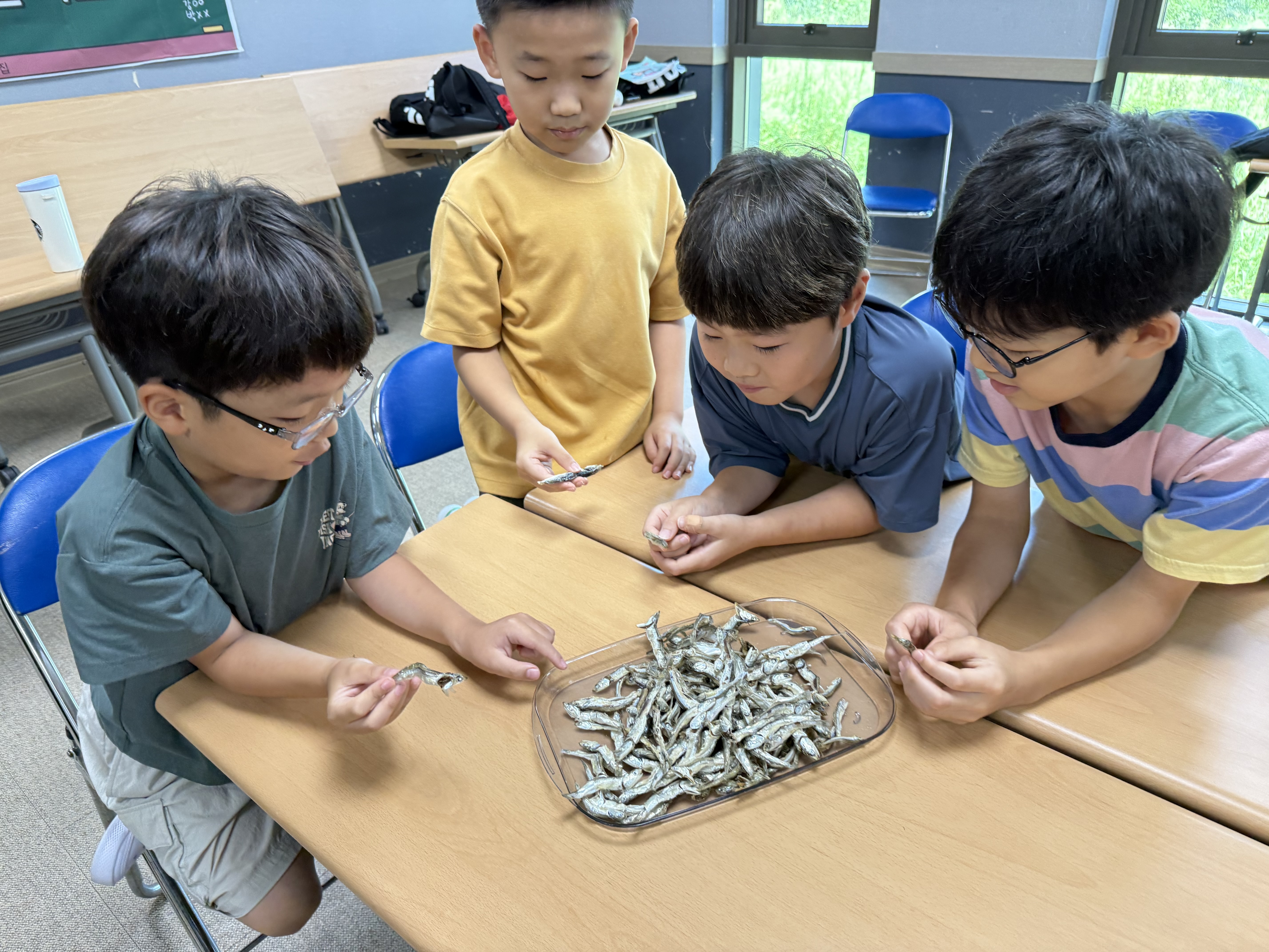 멸치를 이용한 수업은 아이들이 특히 좋아했어요. 멸치를 관찰하고 그려보기도하고