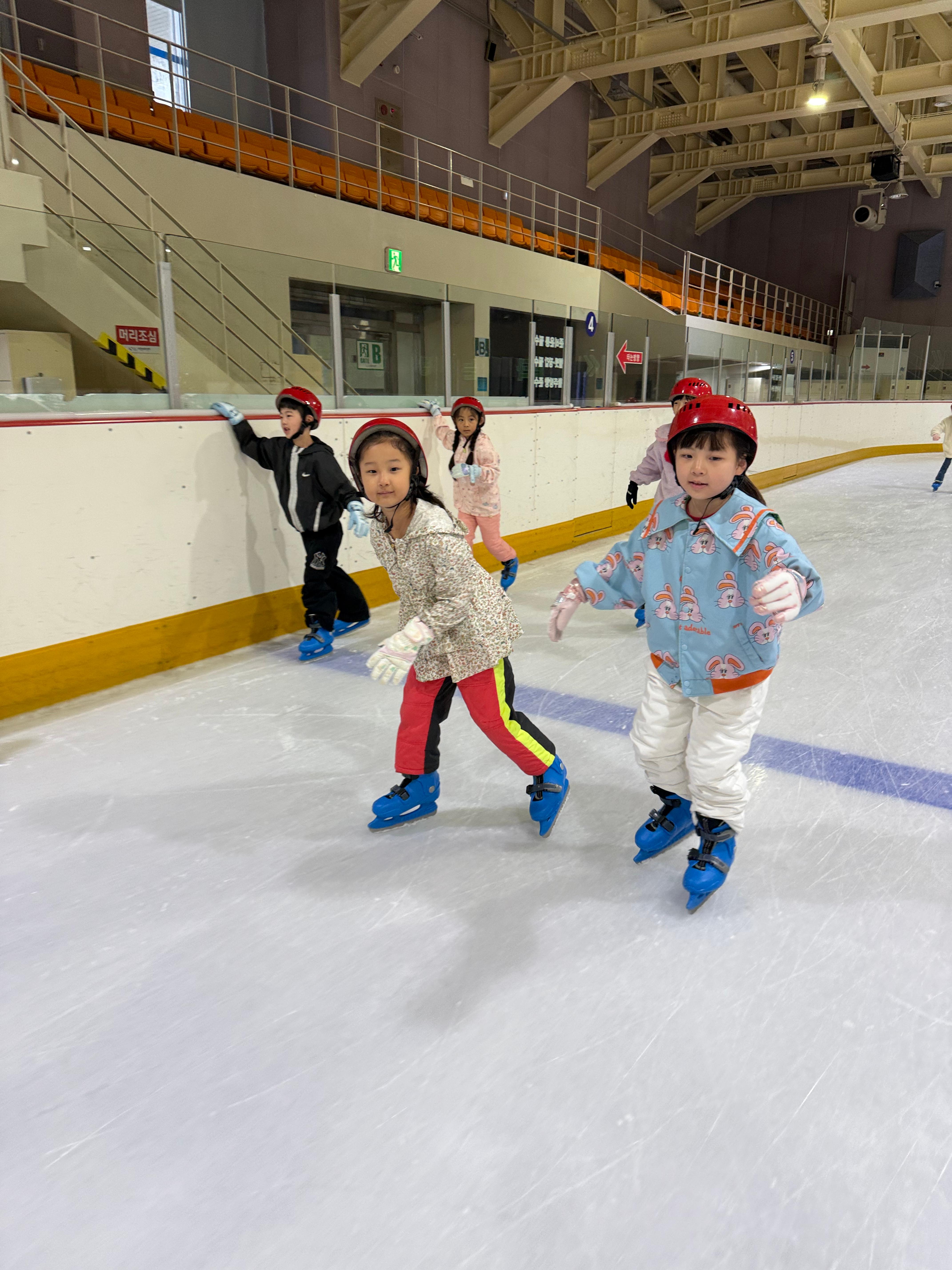 얼음위에서 스케이트를 타고 씽씽 달립니다~