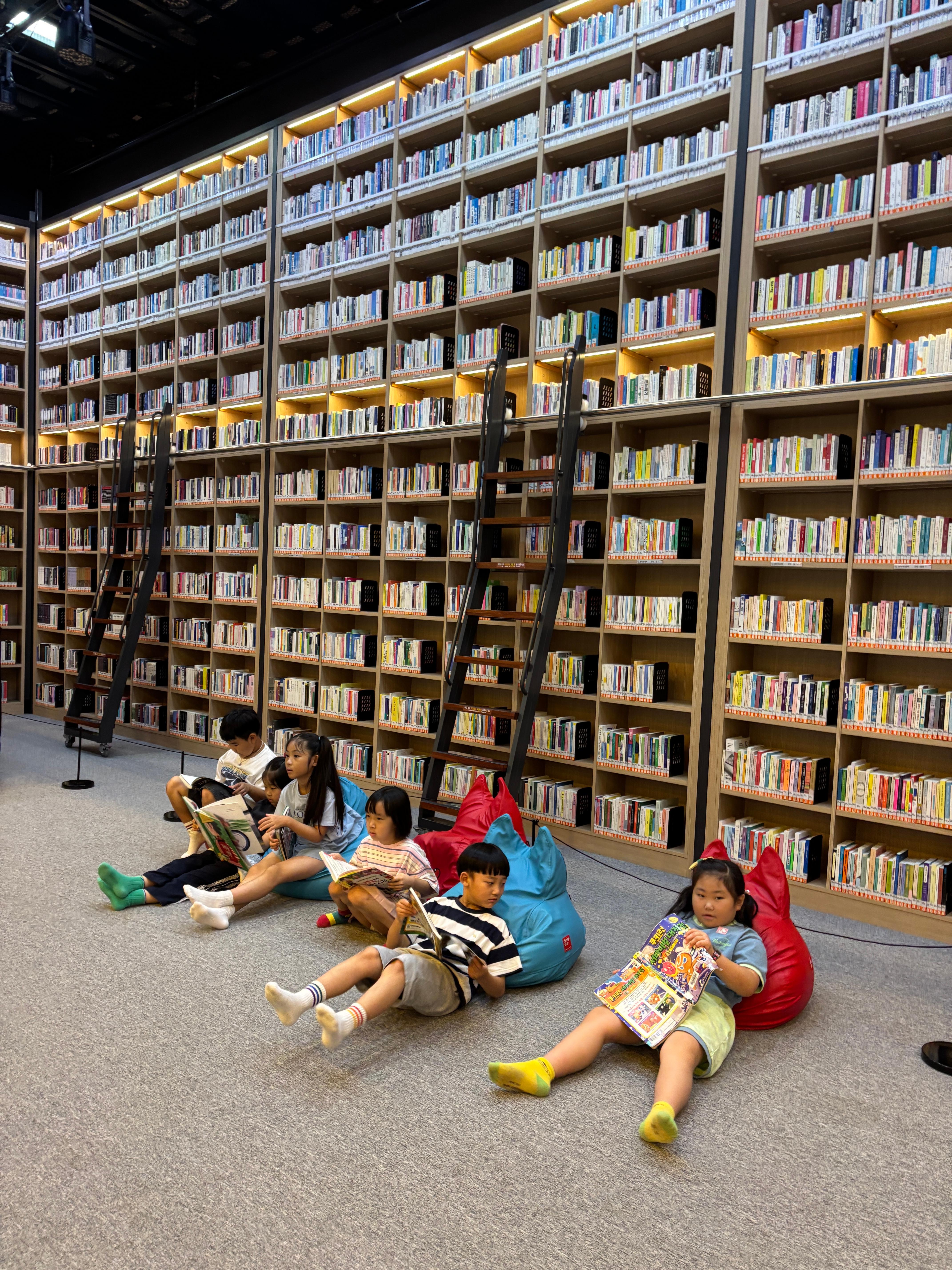 지혜의 바다에서는 살금살금, 소근소근 이곳 저곳을 다니며 마음껏 편한 자세로 앉아 책을 읽었어요.