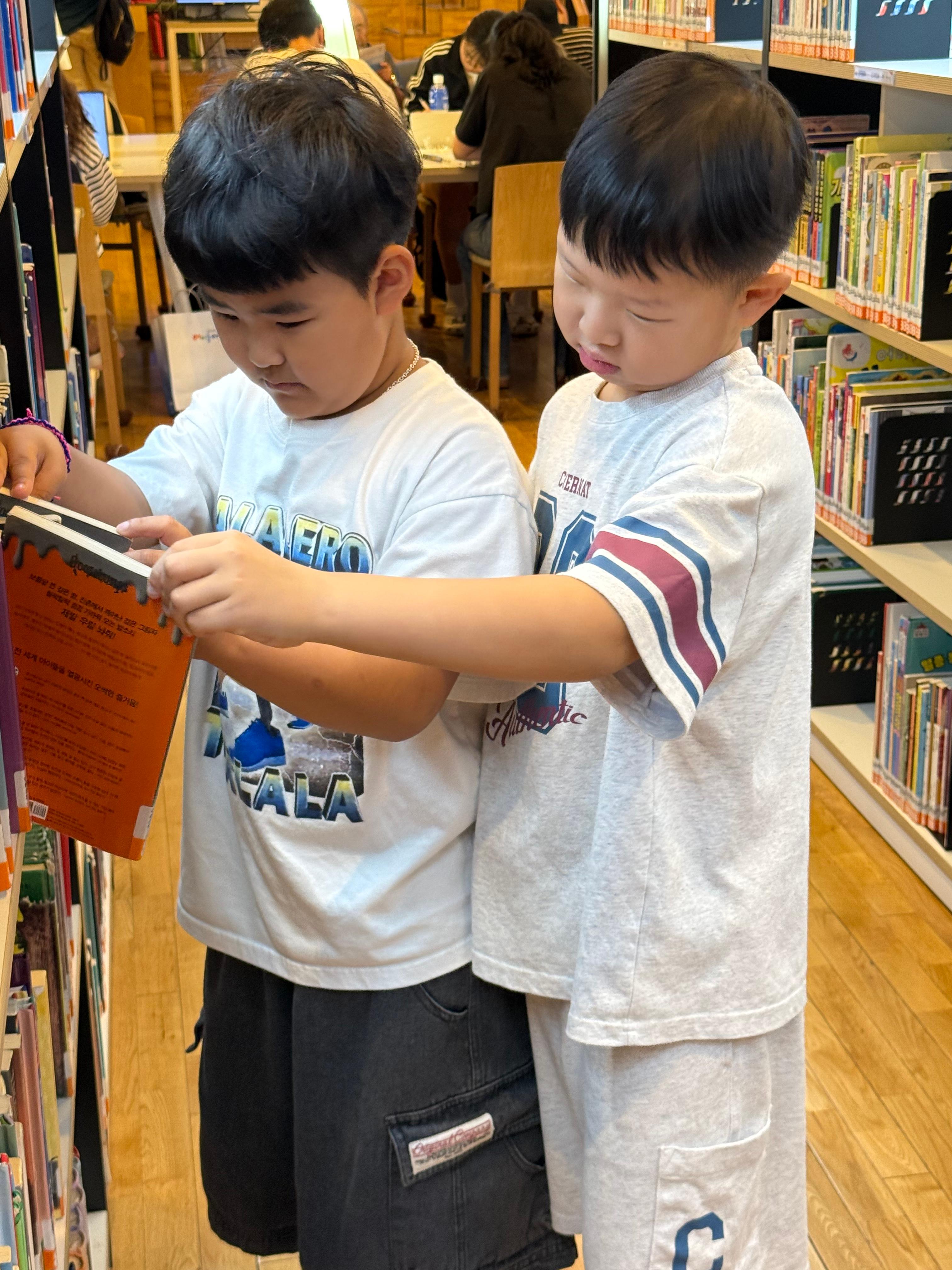 도서 검색대에서 원하는 책을 찾아도 보고, 청구기호를 보고 책을 찾아다니기도 하는 어린이들 모습, 참 귀엽고 기특합니다.