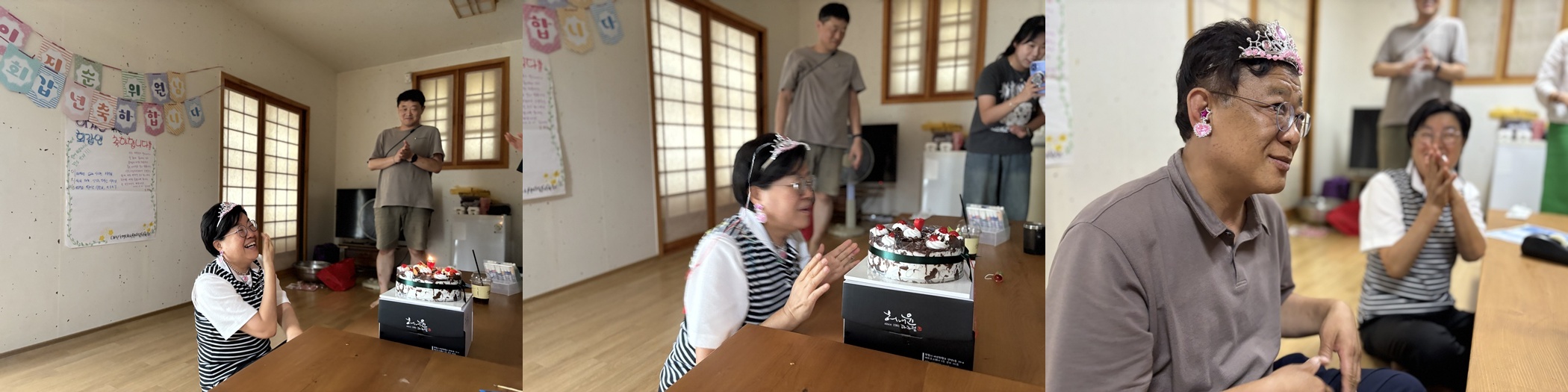 수련회의 또 하나의 전통은 회갑을 맞은 위원을 축하하는 자리입니다. 올해는 책 이야기를 맡았던 이지순 위원의 회갑이라, 조촐하지만 정성 어린 축하의 시간을 가졌습니다. 케이크 촛불 점화와 위원장의 축하 인사, 본인의 소회 나눔으로 따뜻하게 진행되었고, 이어 김태석 위원의 보도국장 승진을 함께 축하하며 기쁨을 나누었습니다.