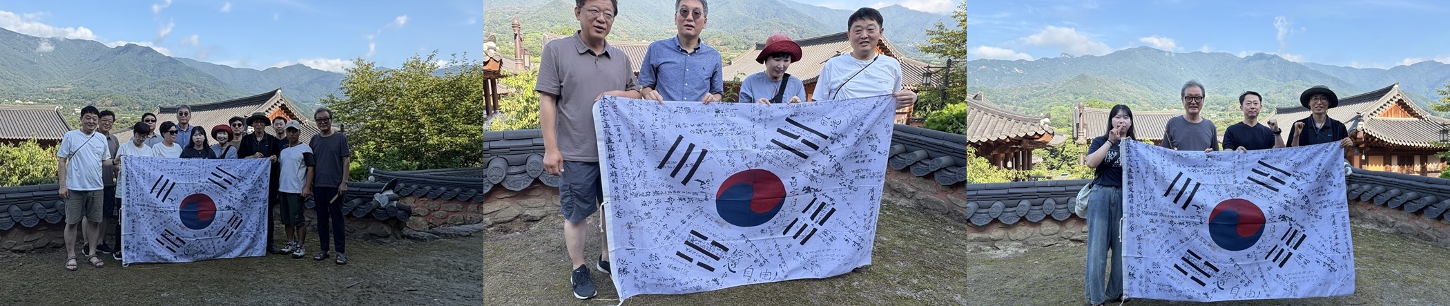 둘째 날은 평사리 공원에서 맨발걷기와 ‘화사별서’ 탐방을 진행하기로 했습니다. 판소리체험관을 떠나기 전 단체사진도 찍었는데, 이승준 위원의 태극기 덕분에 광복 80주년을 기념하는 듯 더욱 뜻깊은 사진이 되었습니다. 화사별서는 후손(화사 조재희 손자)의 해설이 곁들여진 투어가 깊은 울림을 주었습니다. 이어 하동의 참게탕 맛집에서 함께했고 이 맛남이 수련회를 마무리하는 또 하나의 즐거운 순간이었습니다.