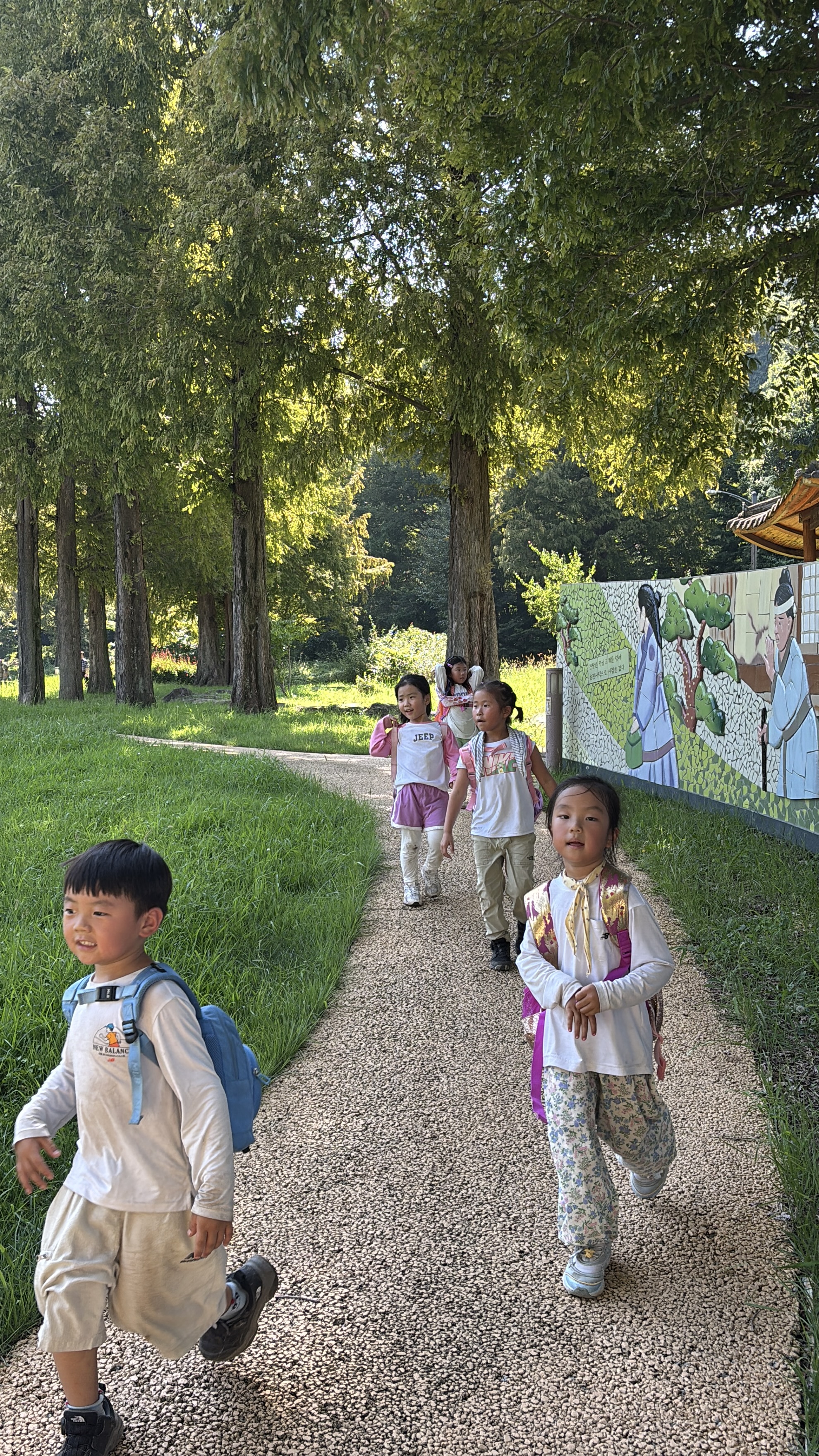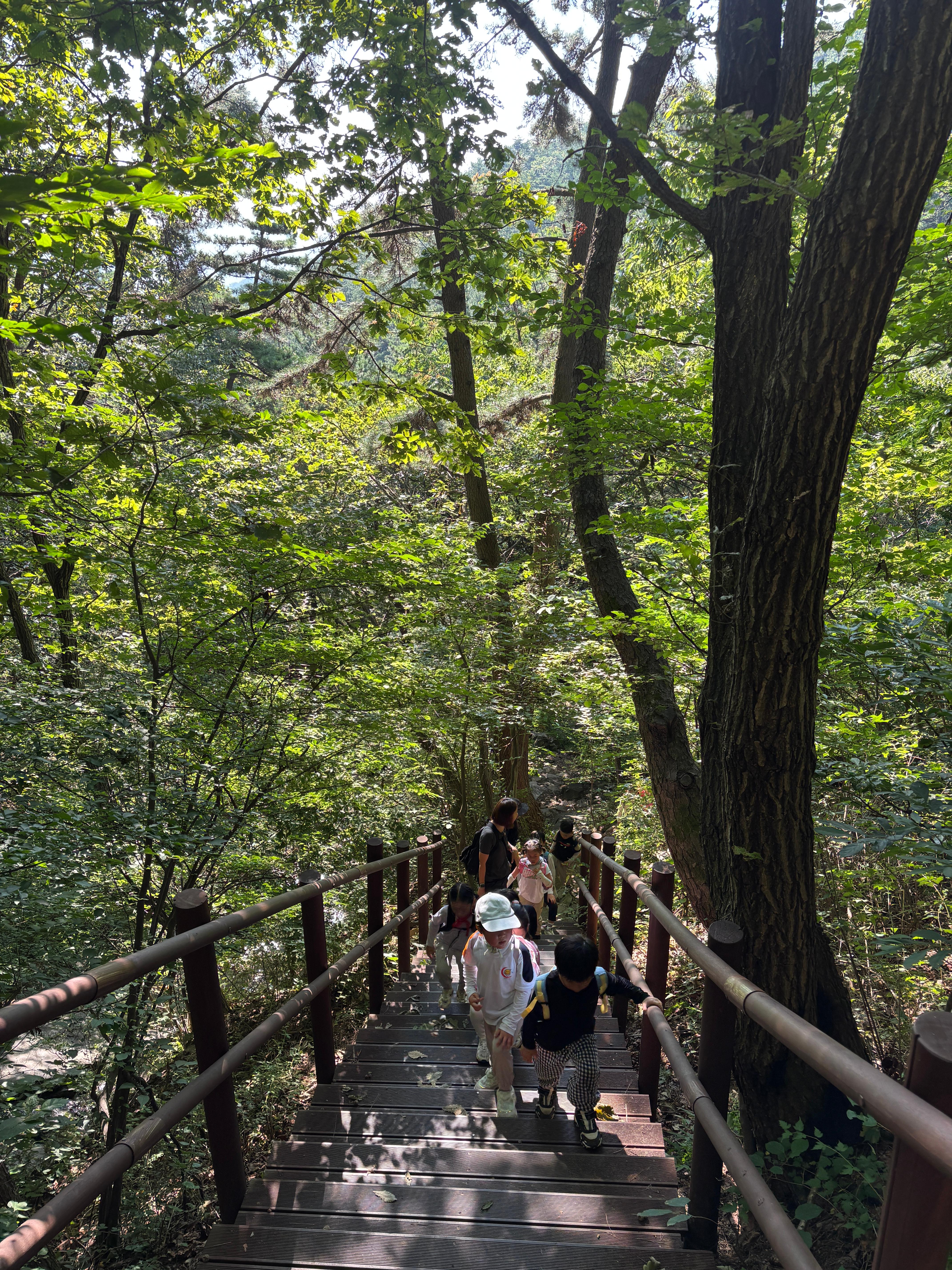 신기하게도 오르면 오를수록 만나는 등산객들의 쓴소리는 단소리로 변해갑니다. 같은말도 어감이 달라집니다. "어디서 왔냐?(감탄스럽게) 7살이 대단하다! 조금만 더 올라가면 정상이야! 화이팅!" 과 같은 말들이 쏟아집니다. 그럼 아이들은 선생님들이 응원하지 않아도 스스로가 점점 뿌듯해집니다. 힘듦도 이겨내지는 마법에 걸리곤 합니다.
