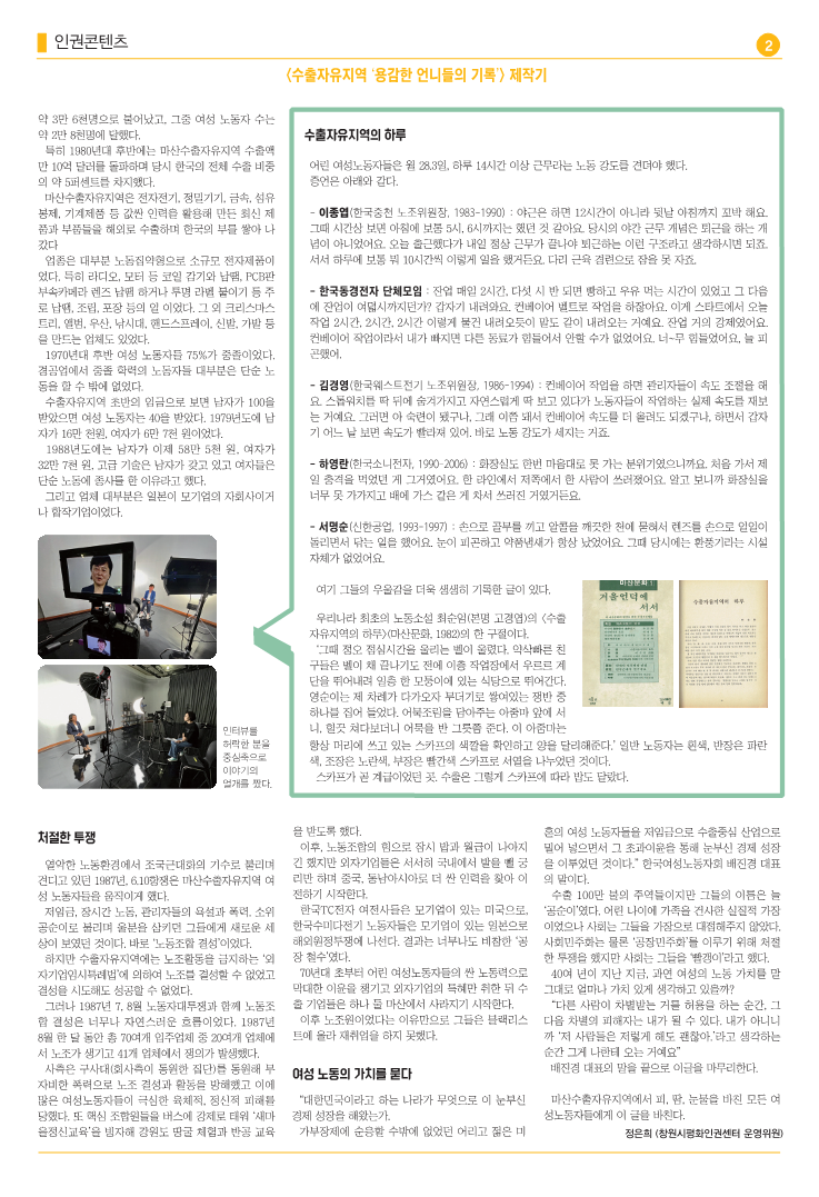 - 수출자유지역 '용감한 언니들의 기록' 제작기/ 정은희(창원시평화인권센터 운영위원)
