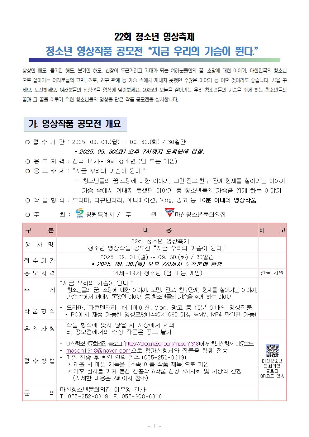 2. 신청서+영상 작품을 masan1318@naver.com으로 전송!
