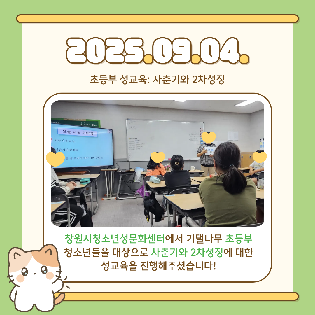 9월 4일, 초등부 대상으로는 사춘기와 2차 성징에 대해 자세히 알아보는 시간을 가졌는데요!